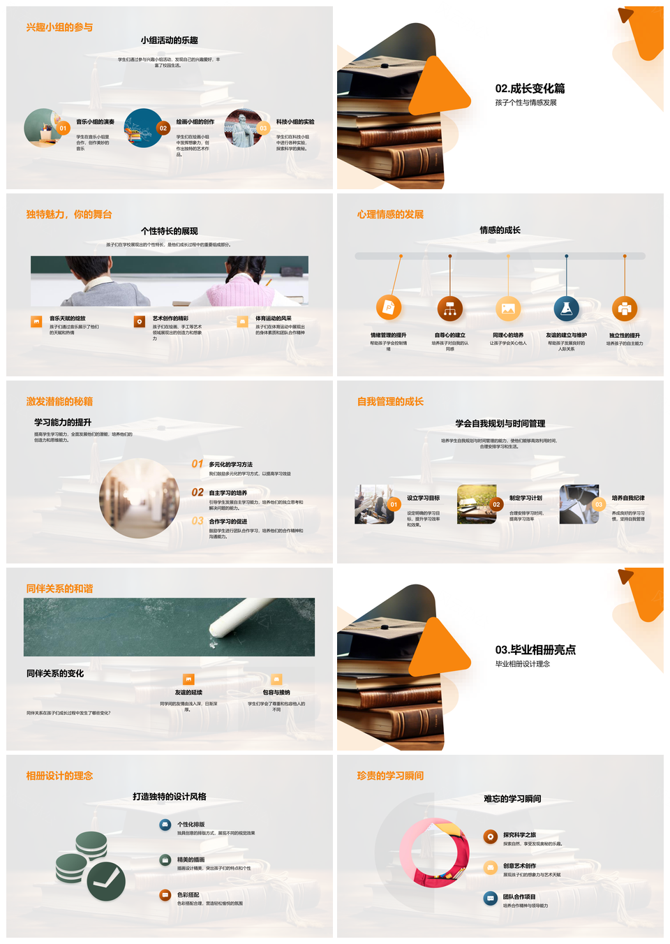 风云办公提供的学途韶华毕业册映成长风采绽PPT模板,下载格式为pptx,一共33页,作品中文字及图均可以修改和编辑,图片更改请在作品中右键图片并更换,文字修改请直接点击文字进行修改。