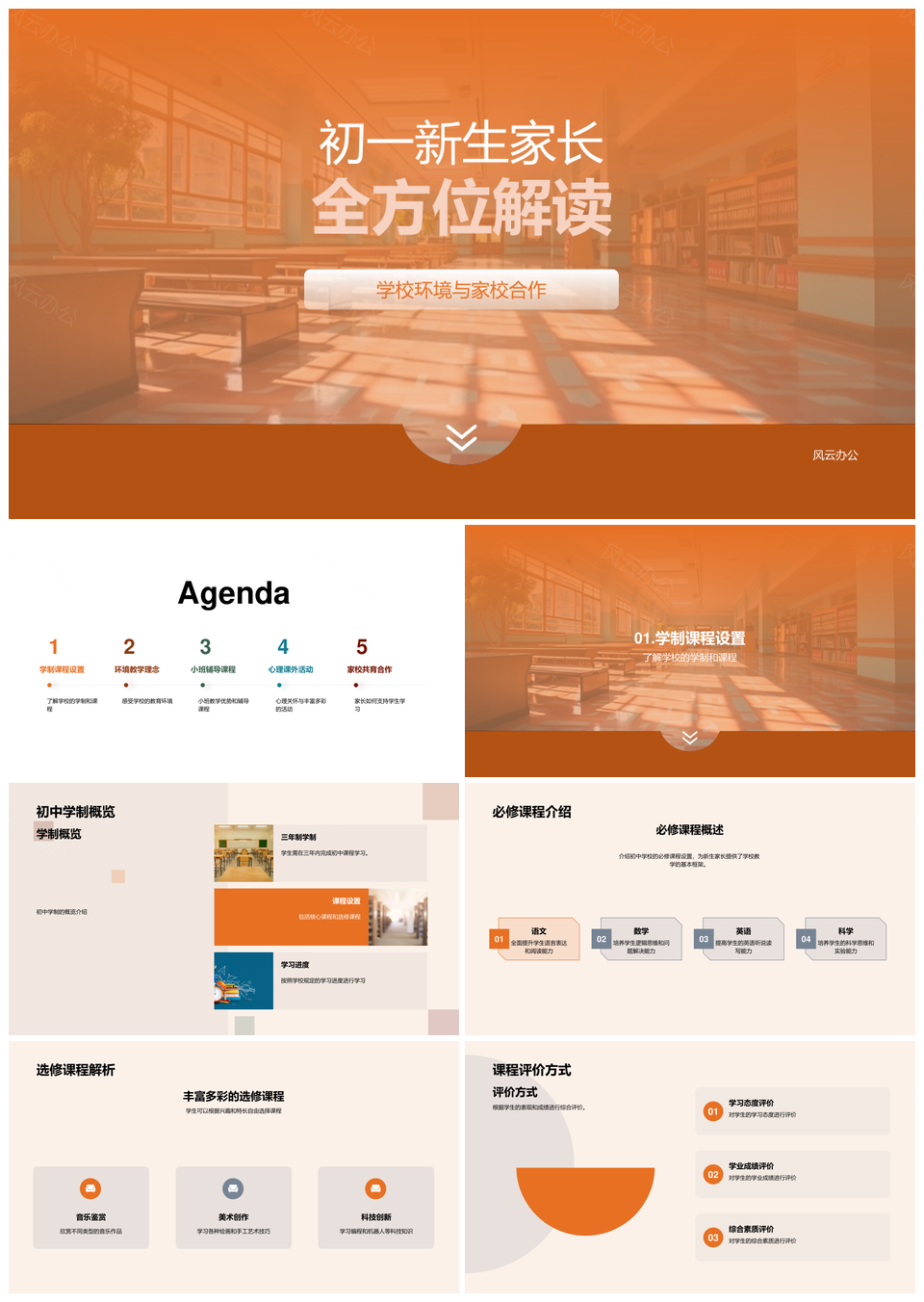 初一家长解读学制课程环境教学家校共育校园设施PPT模板