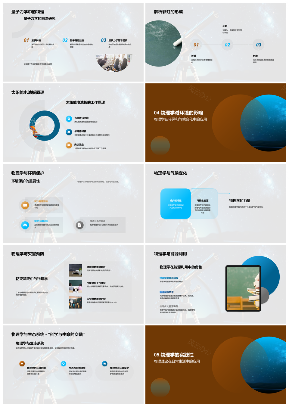 这是一张物理世界基础天电磁量探秘彩虹环保气候PPT模板,包含物理、世界、基础、天电、磁量、探秘、彩虹、环保、气候等主题内容,也可用作物理世界基础电磁、世界基础电磁探秘、基础电磁探秘彩虹、电磁探秘彩虹环保、探秘彩虹环保气候、物理世界电磁探秘、世界电磁探秘彩虹、电磁探秘环保气候、基础彩虹环保气候、物理探秘环保气候、物理世界基础、世界基础电磁、基础电磁探秘、电磁探秘彩虹、探秘彩虹环保、彩虹环保气候、物理世界、基础电磁、电磁探秘、探秘彩虹、环保气候等PPT场景使用。 风云办公提供的物理世界基础天电磁量探秘彩虹环保气候PPT模板,下载格式为pptx,一共33页,作品中文字及图均可以修改和编辑,图片更改请在作品中右键图片并更换,文字修改请直接点击文字进行修改。
