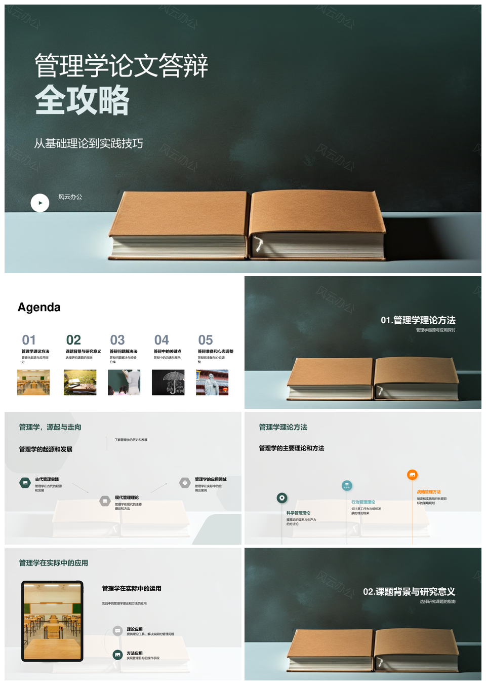 风云办公提供的管理学论文答辩理论实践选题策略经验PPT模板,下载格式为pptx,一共23页,作品中文字及图均可以修改和编辑,图片更改请在作品中右键图片并更换,文字修改请直接点击文字进行修改。