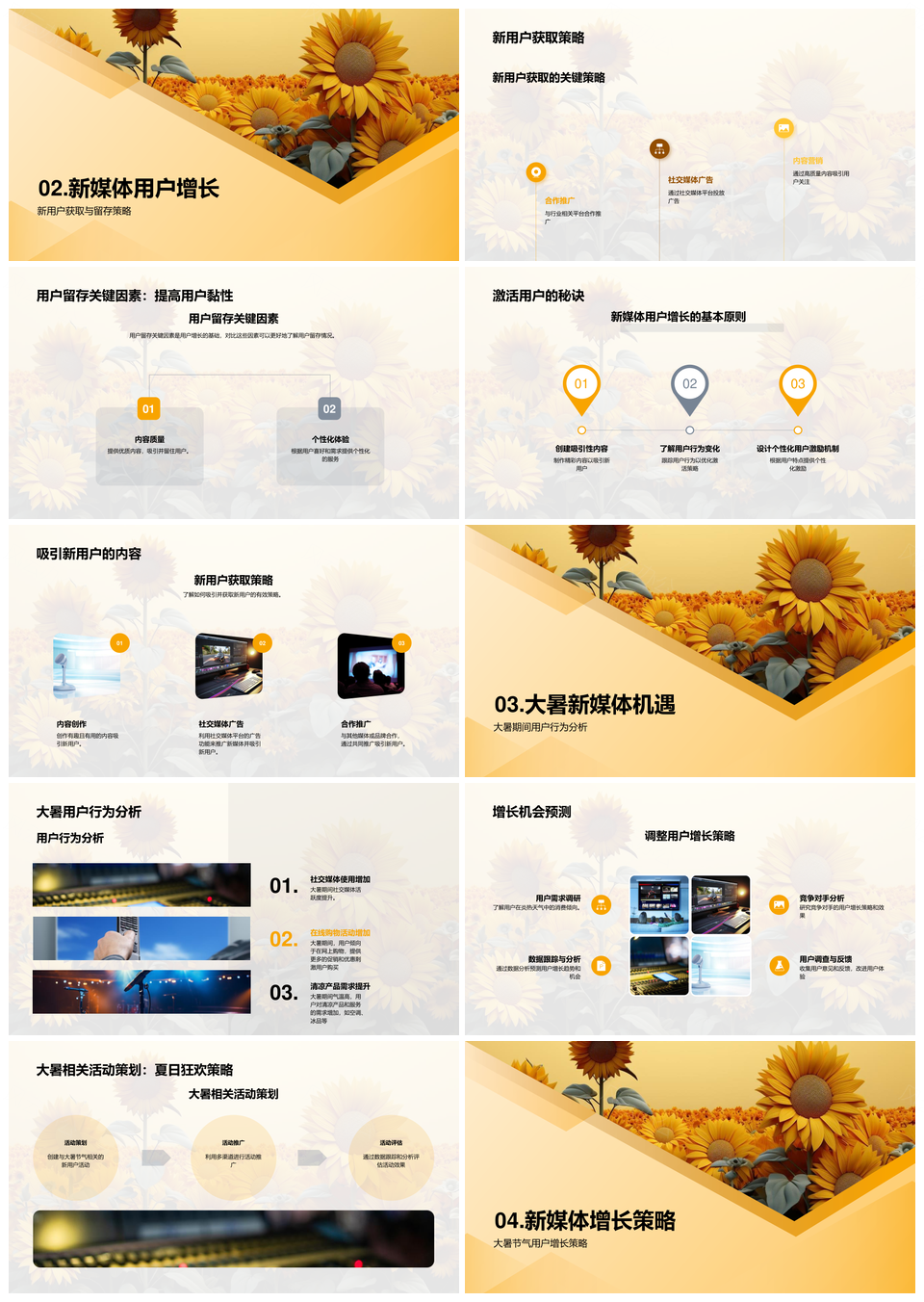 新媒体运营经理大暑用户增长活动向日葵趋势洞察PPT模板推荐