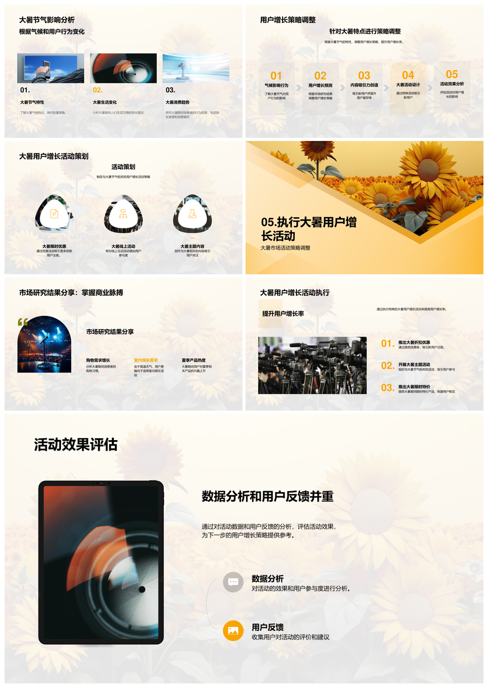 新媒体运营经理大暑用户增长活动向日葵趋势洞察PPT模板