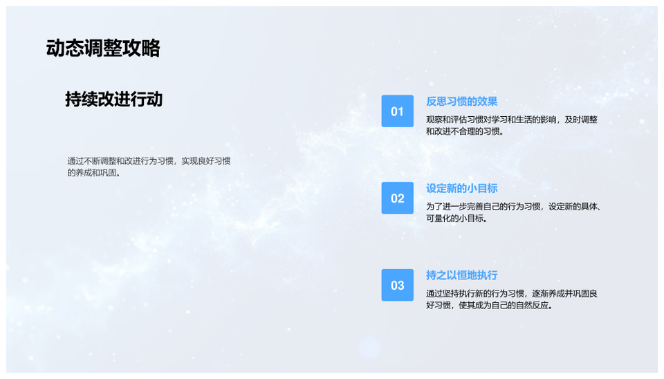 这是一张初三学生高效习惯养成提升学习效率PPT模板,包含初三学生、高效习惯、养成、提升、学习效率等主题内容,也可用作初三学生高效习惯、学生高效习惯养成、高效习惯养成提升、习惯养成提升学习、养成提升学习效率、初三学生高效、学生高效习惯、高效习惯养成、习惯养成提升、养成提升学习、提升学习效率、初三学生、高效习惯、习惯养成、学习效率等PPT场景使用。