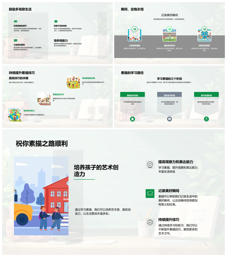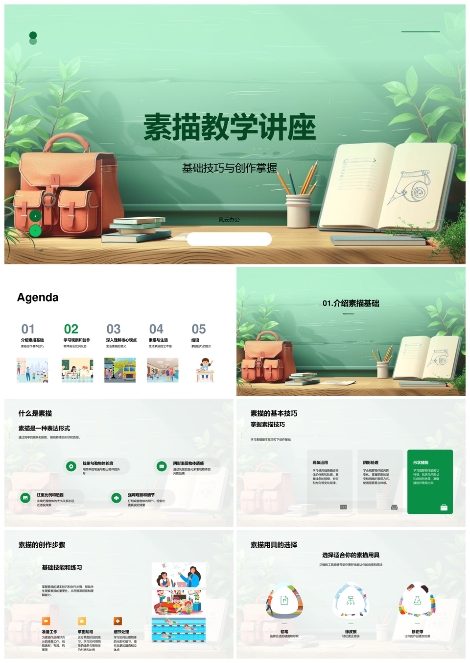 三年级素描教学团队基础创作技巧提升讲座PPT模板推荐