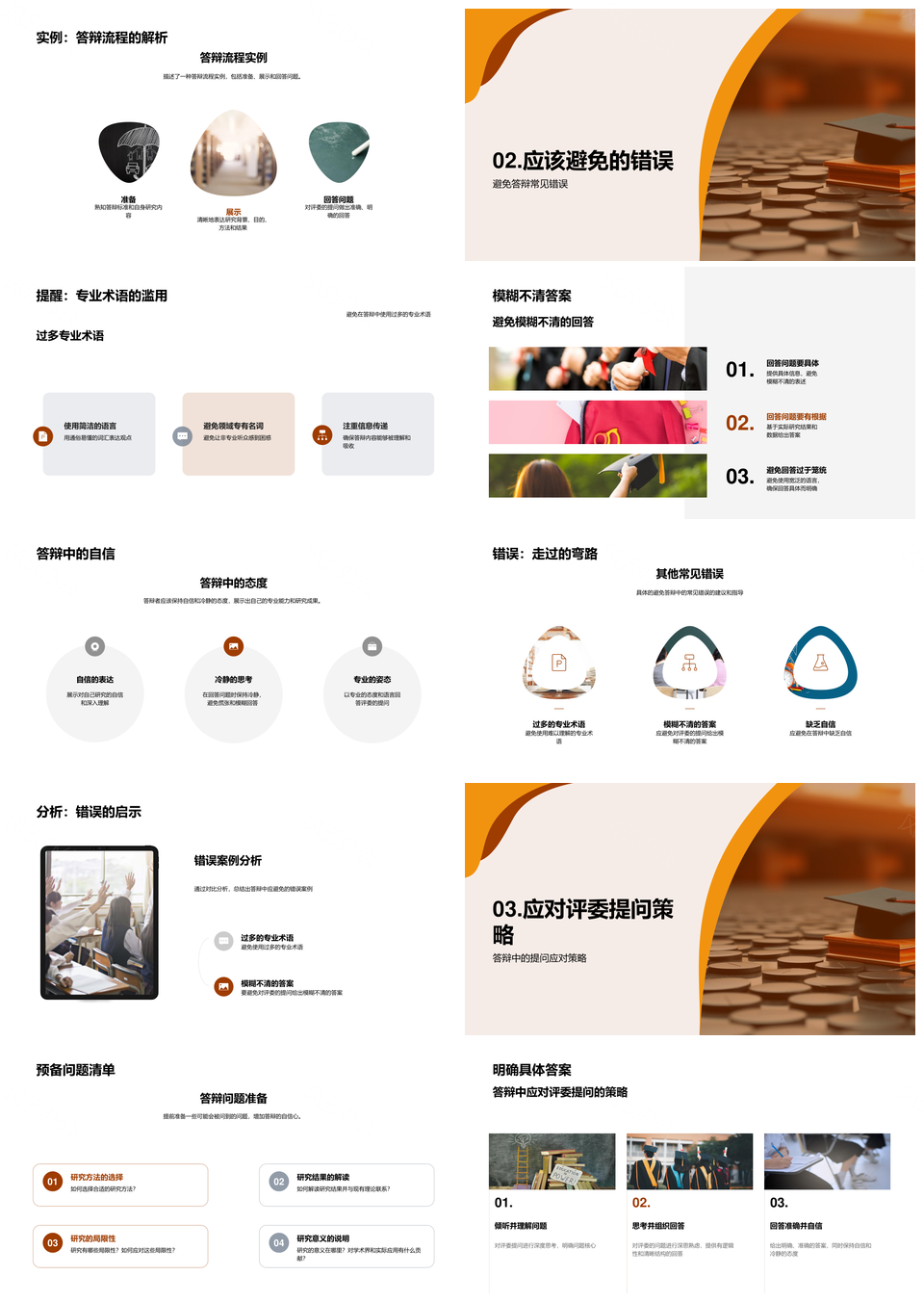 答辩技巧流程避错自信应对提问专业术语讲台PPT模板推荐
