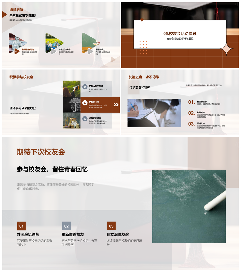 校友会师科教培互动扩规模座谈音乐会毕业帽PPT模板推荐