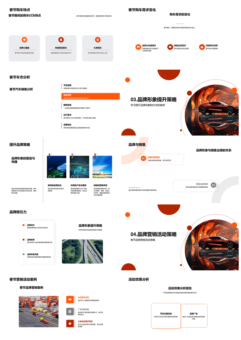 这是一张春节汽车营销战略驱动品牌提升与销售业绩PPT模板,包含春节、汽车、营销、战略、驱动、品牌、提升、销售、业绩等主题内容,也可用作春节汽车营销战略驱动品牌、汽车营销战略驱动品牌提升、营销战略驱动品牌提升销售业绩、战略驱动品牌提升销售业绩、春节汽车营销战略驱动、汽车营销战略驱动品牌、营销战略驱动品牌提升、战略驱动品牌提升销售、驱动品牌提升销售业绩、春节汽车营销战略、汽车营销战略驱动、营销战略驱动品牌、战略驱动品牌提升、驱动品牌提升销售、品牌提升销售业绩等PPT场景使用。 风云办公提供的春节汽车营销战略驱动品牌提升与销售业绩PPT模板,下载格式为pptx,一共23页,作品中文字及图均可以修改和编辑,图片更改请在作品中右键图片并更换,文字修改请直接点击文字进行修改。