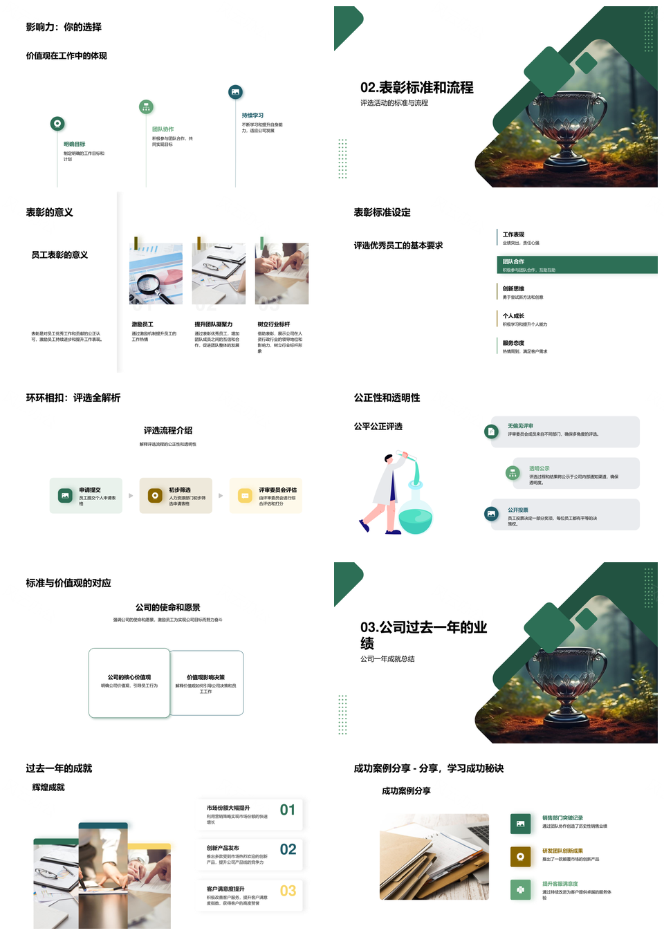 使命愿景核心价值观年度员工表彰公正透明PPT模板