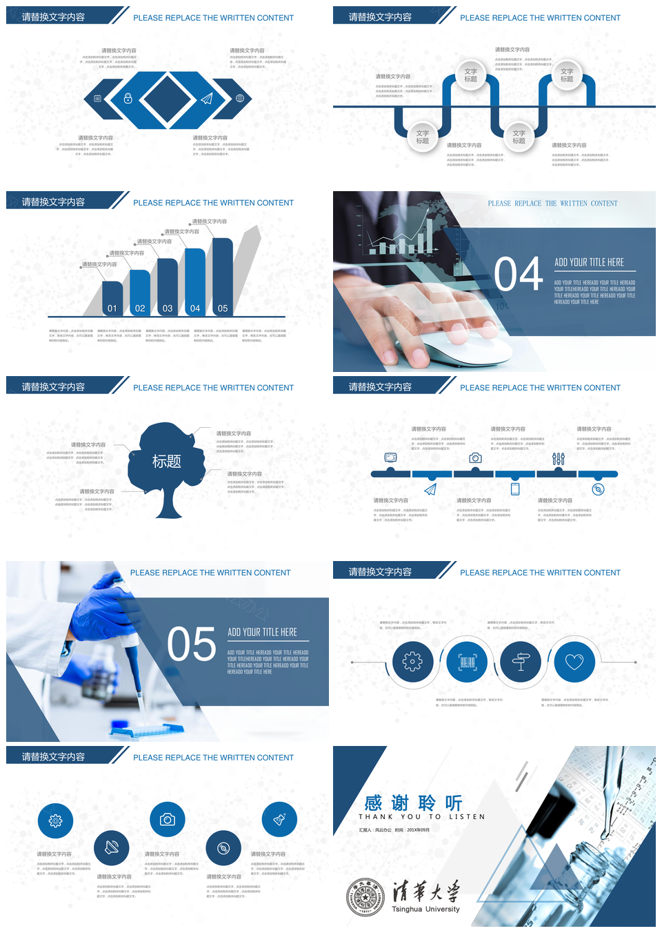 蓝色毕业论文答辩毕业生学术论文几何风简约精致实用ppPPT模板