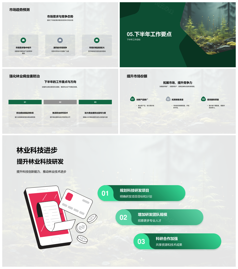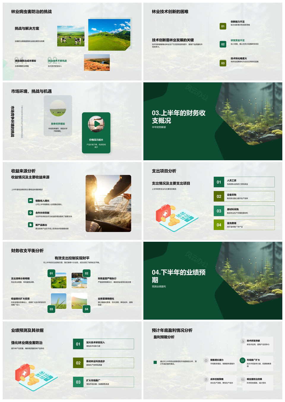 林业发展年中生产销售技术创新病虫害防治业绩预测森林总结PPT模板推荐