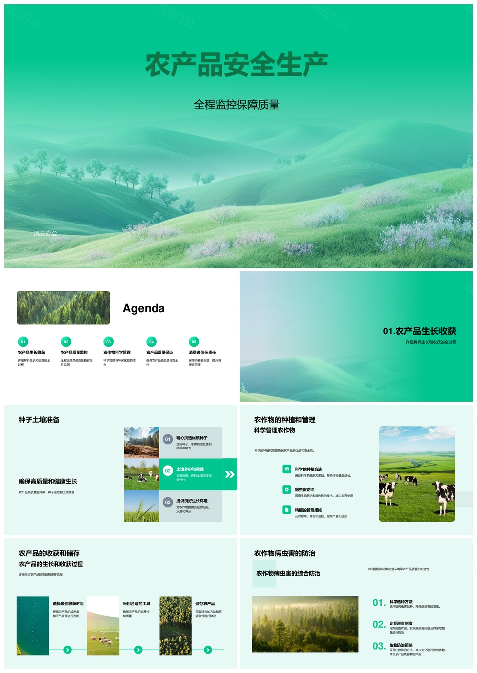 风云办公提供的农产品安全全程监控种收质保PPT模板,下载格式为pptx,一共28页,作品中文字及图均可以修改和编辑,图片更改请在作品中右键图片并更换,文字修改请直接点击文字进行修改。