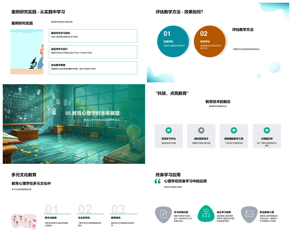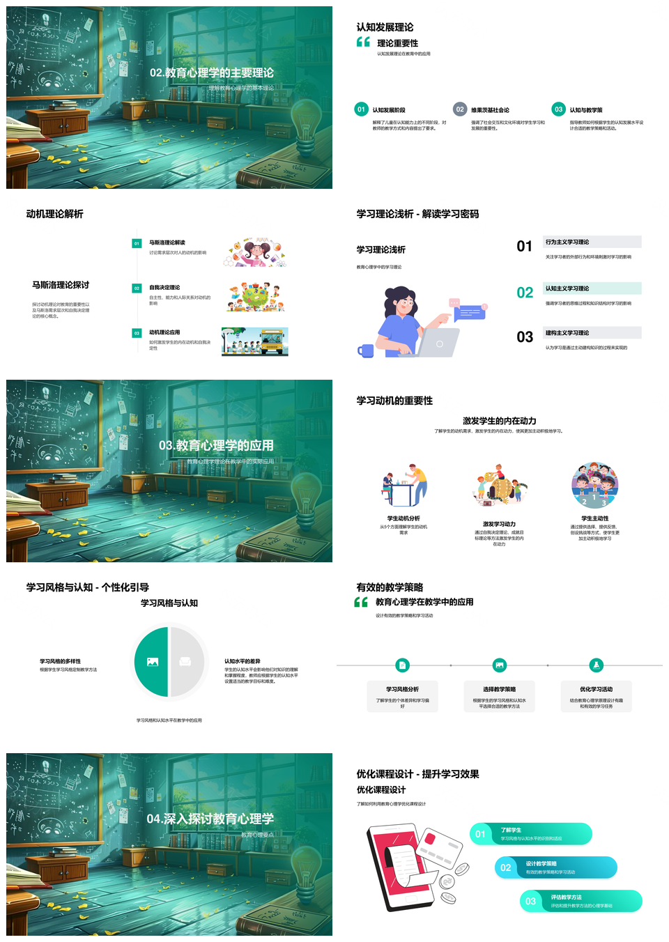 风云办公提供的教育心理学理论策略与课程优化设计PPT模板,下载格式为pptx,一共24页,作品中文字及图均可以修改和编辑,图片更改请在作品中右键图片并更换,文字修改请直接点击文字进行修改。