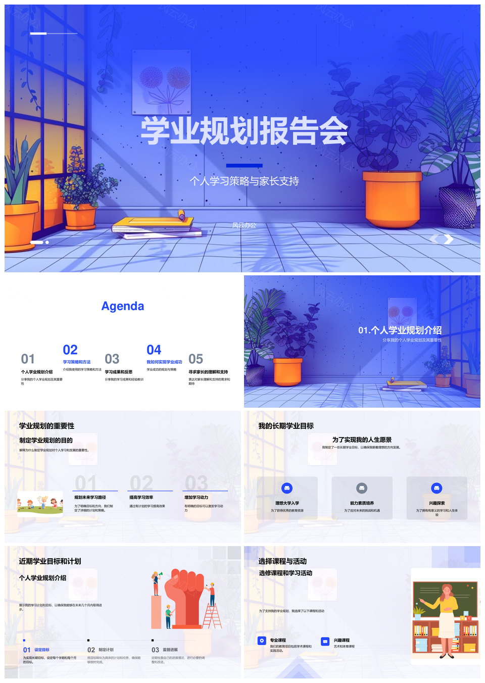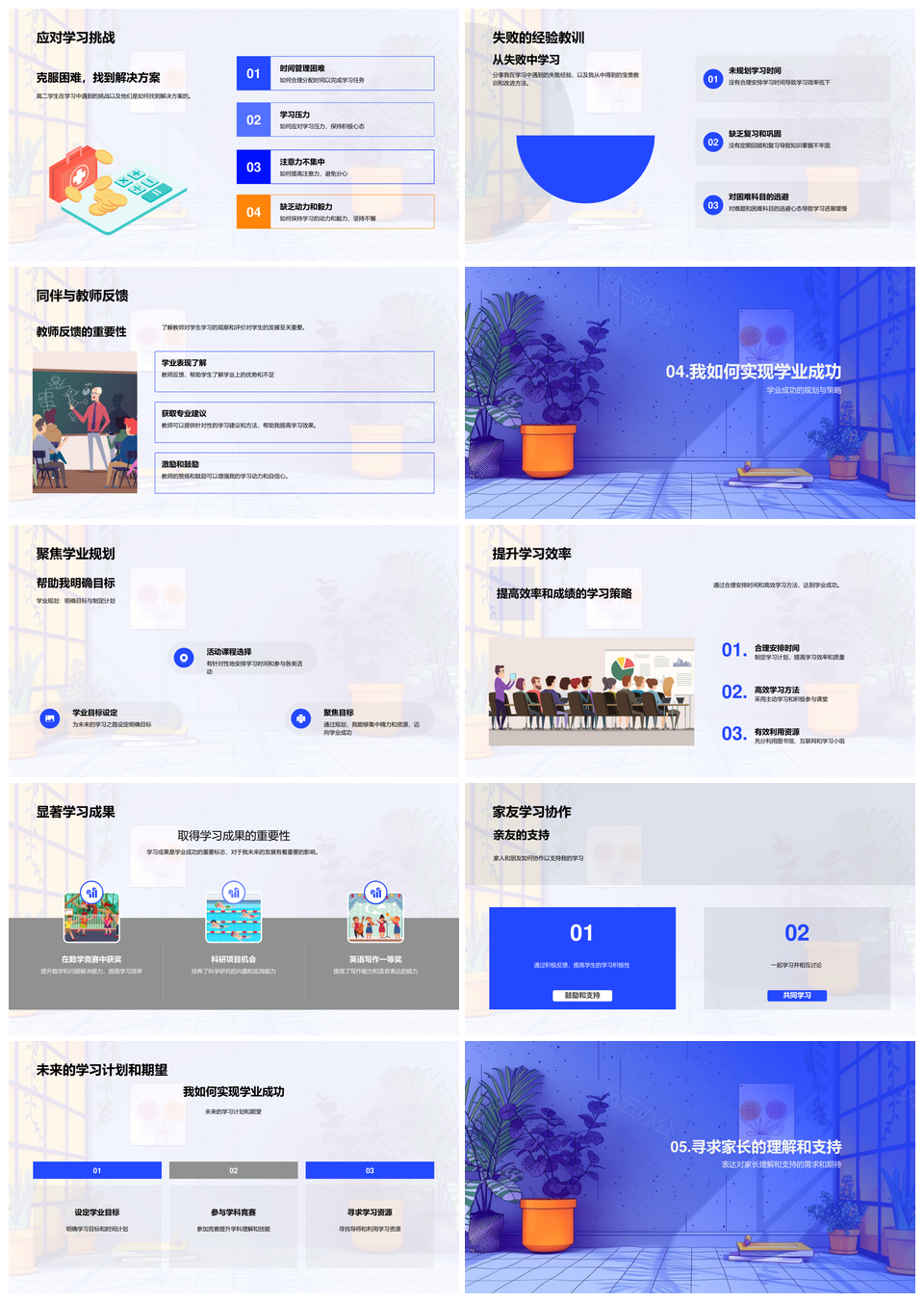 学业规划策略家长助力长期目标时间管理主动学习资源成果PPT模板推荐