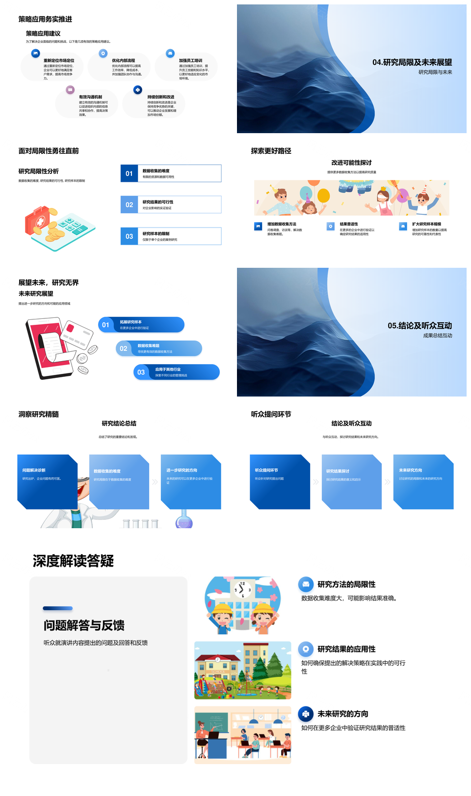 专业毕业答辩研究主题方法贡献问题策略展望PPT模板
