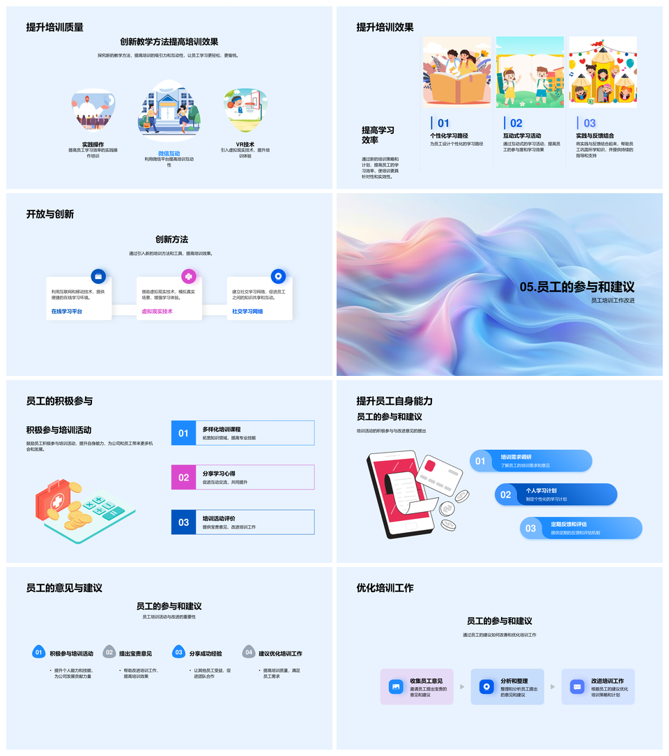 月度培训总结员工参与建议开放创新提质个性化PPT模板推荐