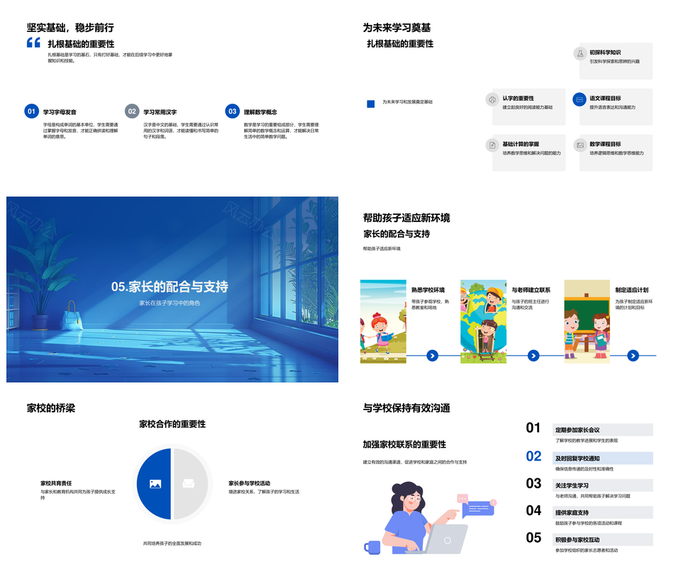 这是一张一年级开学导向家校共育学科基础行为规范PPT模板,包含一年级、开学、导向、家校、共育、学科、基础、行为、规范等主题内容,也可用作一年级开学导向家校共育、开学导向家校共育学科、导向家校共育学科基础、家校共育学科基础行为规范、共育学科基础行为规范、一年级开学导向家校、开学导向家校共育、导向家校共育学科、家校共育学科基础、学科基础行为规范、一年级开学导向、开学导向家校、导向家校共育、家校共育学科、共育学科基础等PPT场景使用。 风云办公提供的一年级开学导向家校共育学科基础行为规范PPT模板,下载格式为pptx,一共24页,作品中文字及图均可以修改和编辑,图片更改请在作品中右键图片并更换,文字修改请直接点击文字进行修改。