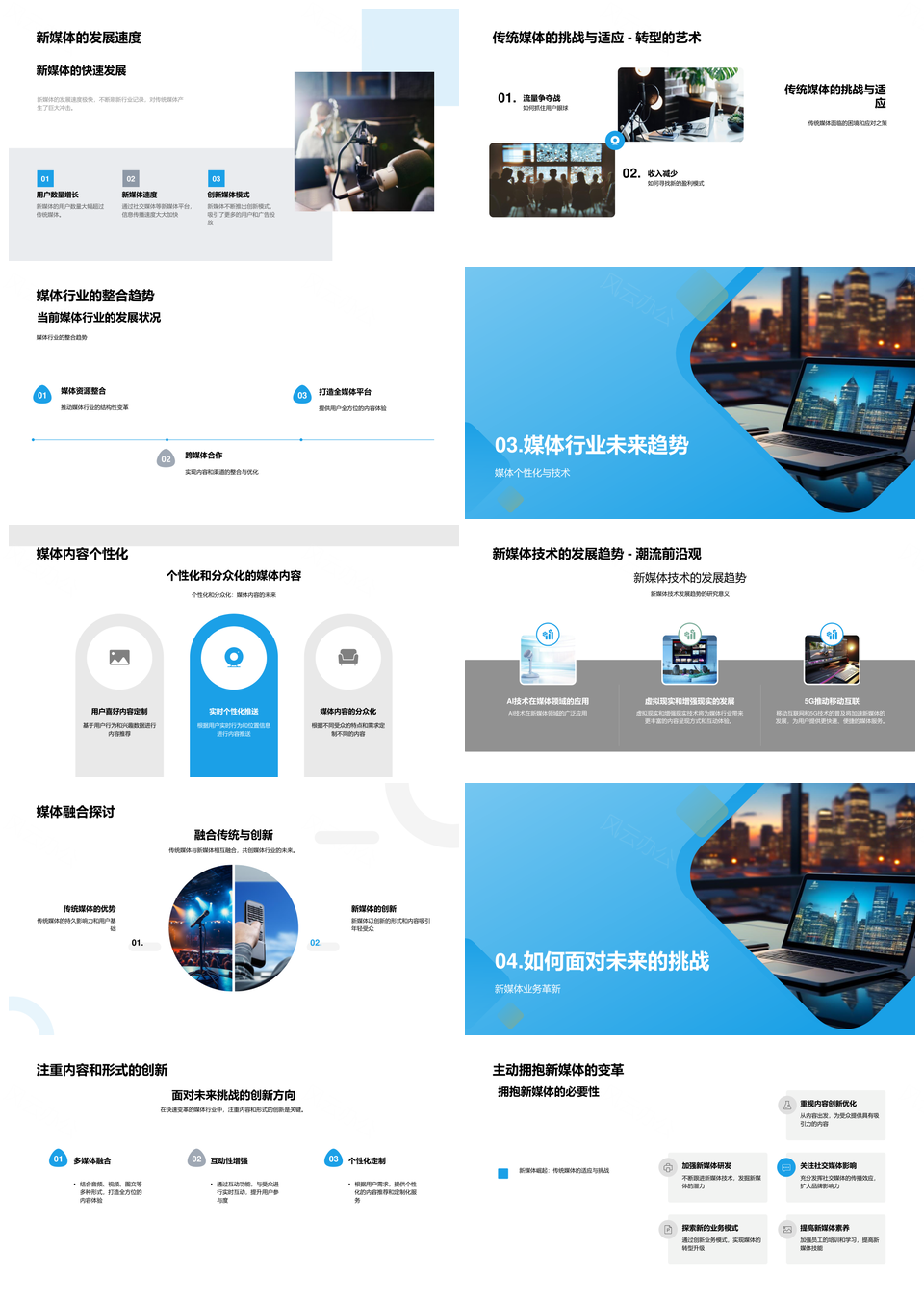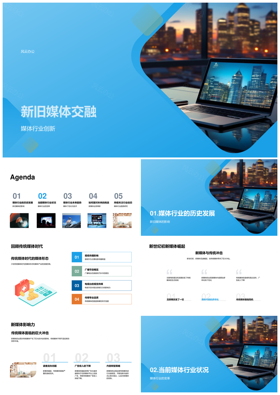 风云办公提供的新媒体崛起与传统媒体融合创新PPT模板,下载格式为pptx,一共23页,作品中文字及图均可以修改和编辑,图片更改请在作品中右键图片并更换,文字修改请直接点击文字进行修改。