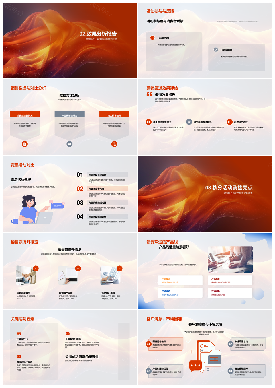 这是一张秋分营销效果分析渠道评估销售提升热销产品成功因素复购策略PPT模板,包含秋分、营销效果、分析、渠道、评估、销售、提升、热销产品、成功因素、复购策略等主题内容,也可用作秋分营销效果分析、渠道评估销售提升、热销产品成功因素、成功因素复购策略、秋分营销效果、营销效果分析、效果分析渠道、分析渠道评估、渠道评估销售、评估销售提升、销售提升热销、提升热销产品、热销产品成功、产品成功因素、因素复购策略等PPT场景使用。 风云办公提供的秋分营销效果分析渠道评估销售提升热销产品成功因素复购策略PPT模板,下载格式为pptx,一共28页,作品中文字及图均可以修改和编辑,图片更改请在作品中右键图片并更换,文字修改请直接点击文字进行修改。