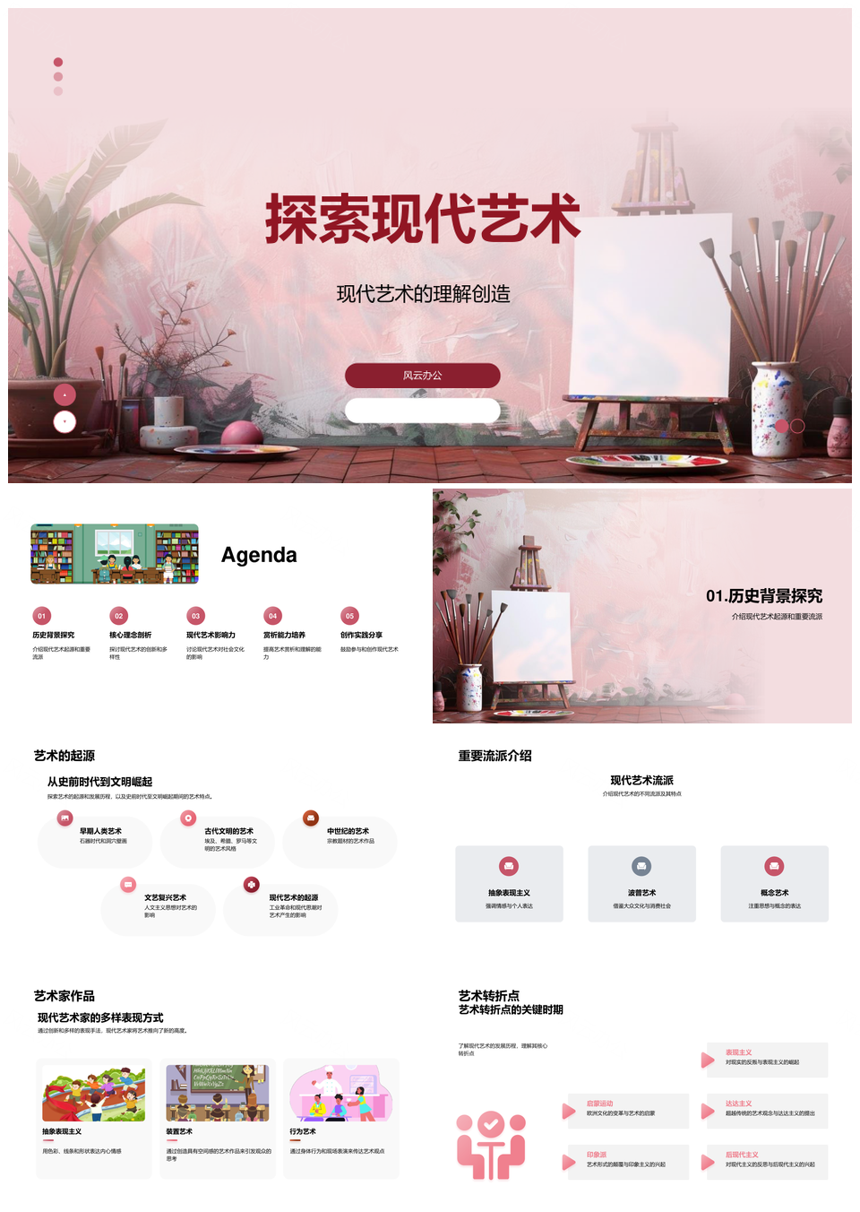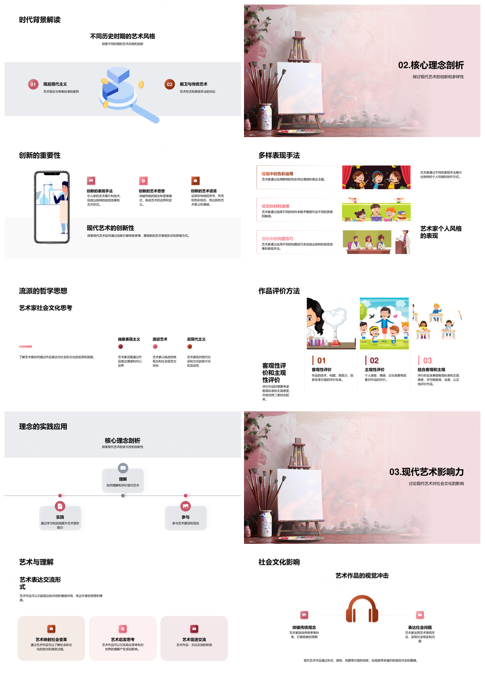 现代艺术流派名家创新表现赏析评价社会影响PPT模板推荐
