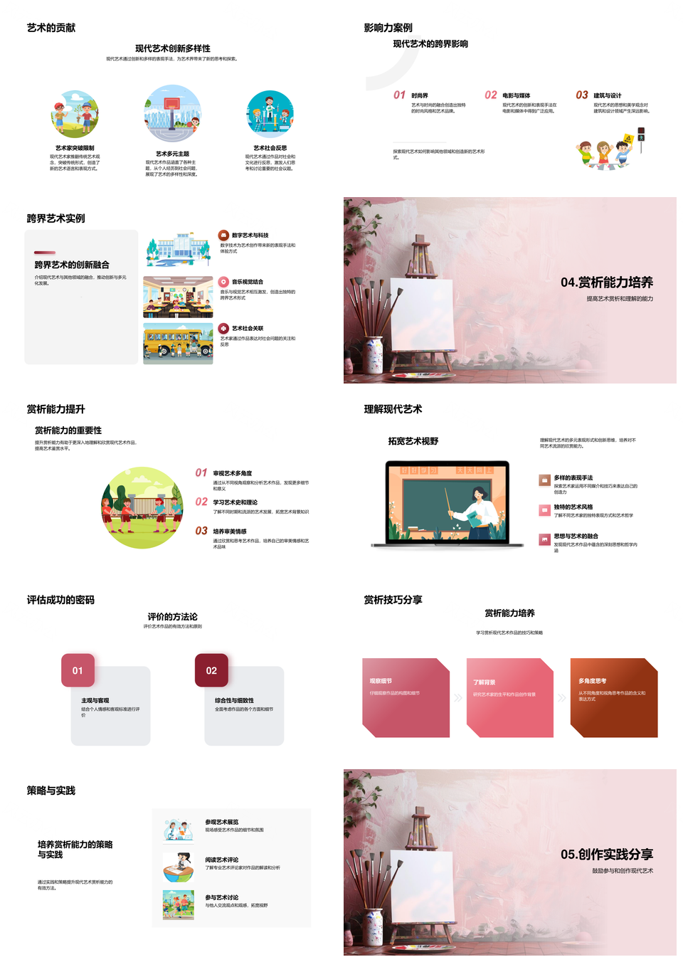 这是一张现代艺术流派名家创新表现赏析评价社会影响PPT模板,包含现代艺术、流派、名家、创新、表现、赏析、评价、社会影响等主题内容,也可用作现代艺术流派名家创新、现代艺术流派创新表现、名家创新表现赏析、创新表现赏析评价、表现赏析评价社会影响、现代艺术名家创新表现、流派名家创新表现、现代艺术创新表现社会影响、名家表现赏析评价、现代艺术赏析社会影响、现代艺术流派名家、流派名家创新、创新表现赏析、赏析评价社会影响、现代艺术社会影响等PPT场景使用。 风云办公提供的现代艺术流派名家创新表现赏析评价社会影响PPT模板,下载格式为pptx,一共33页,作品中文字及图均可以修改和编辑,图片更改请在作品中右键图片并更换,文字修改请直接点击文字进行修改。