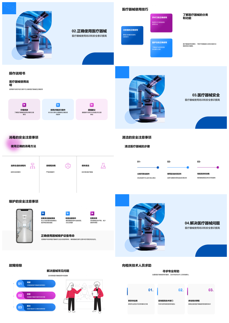 这是一张医疗器械安全使用操作技巧培训保障患者安全PPT模板,包含医疗器械、安全使用、操作技巧、培训、保障、患者、安全等主题内容,也可用作医疗器械安全使用操作技巧、安全使用操作技巧培训、医疗器械使用操作技巧培训、培训保障患者安全、医疗器械安全使用、安全使用操作技巧、使用操作技巧培训、操作技巧培训保障、保障患者安全、医疗器械操作技巧培训、医疗器械安全培训、医疗器械安全、安全使用、使用操作技巧、操作技巧培训等PPT场景使用。 风云办公提供的医疗器械安全使用操作技巧培训保障患者安全PPT模板,下载格式为pptx,一共27页,作品中文字及图均可以修改和编辑,图片更改请在作品中右键图片并更换,文字修改请直接点击文字进行修改。
