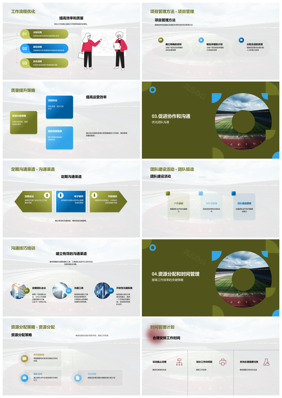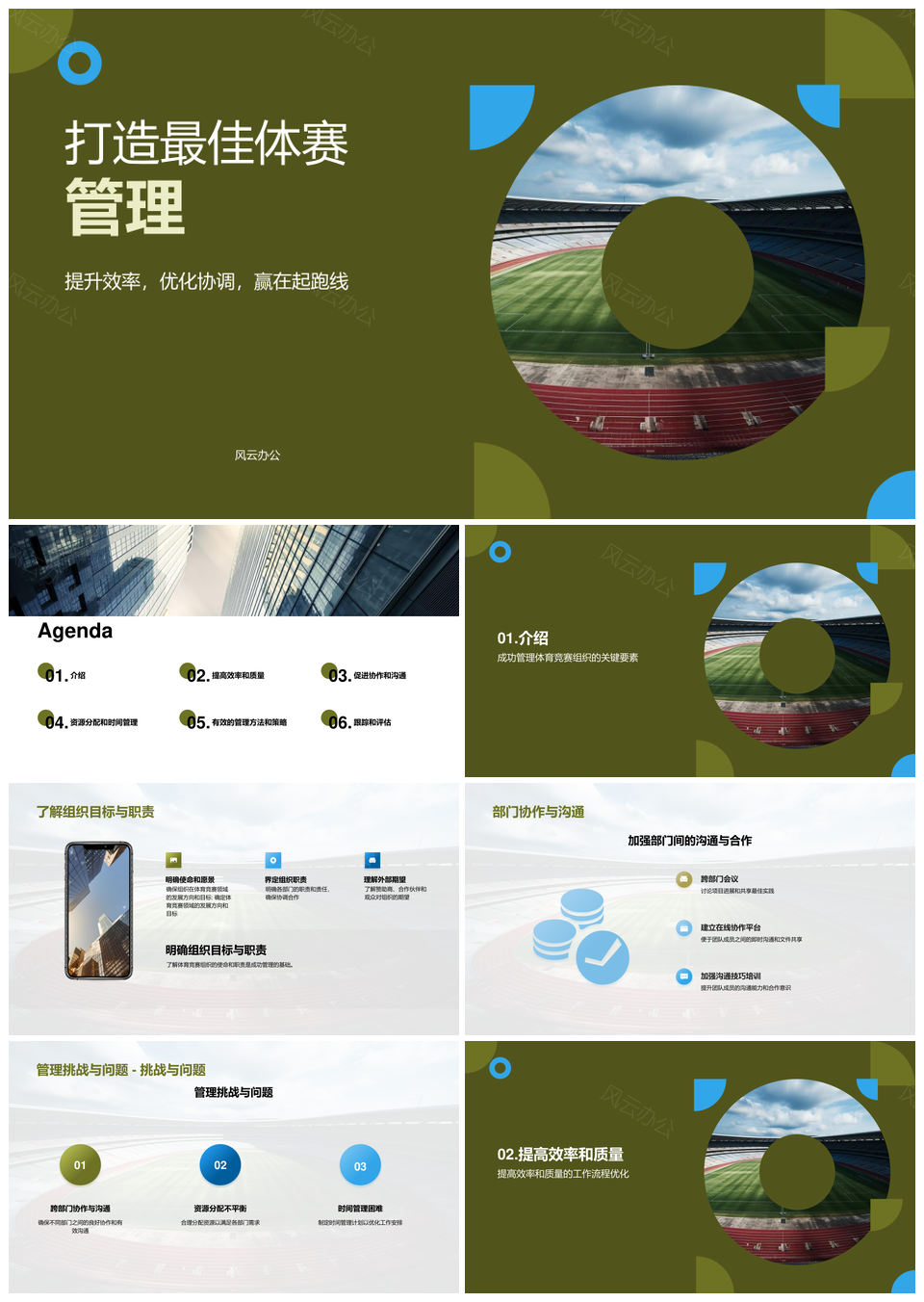 风云办公提供的体育竞赛高效组织管理与协调策略PPT模板,下载格式为pptx,一共27页,作品中文字及图均可以修改和编辑,图片更改请在作品中右键图片并更换,文字修改请直接点击文字进行修改。