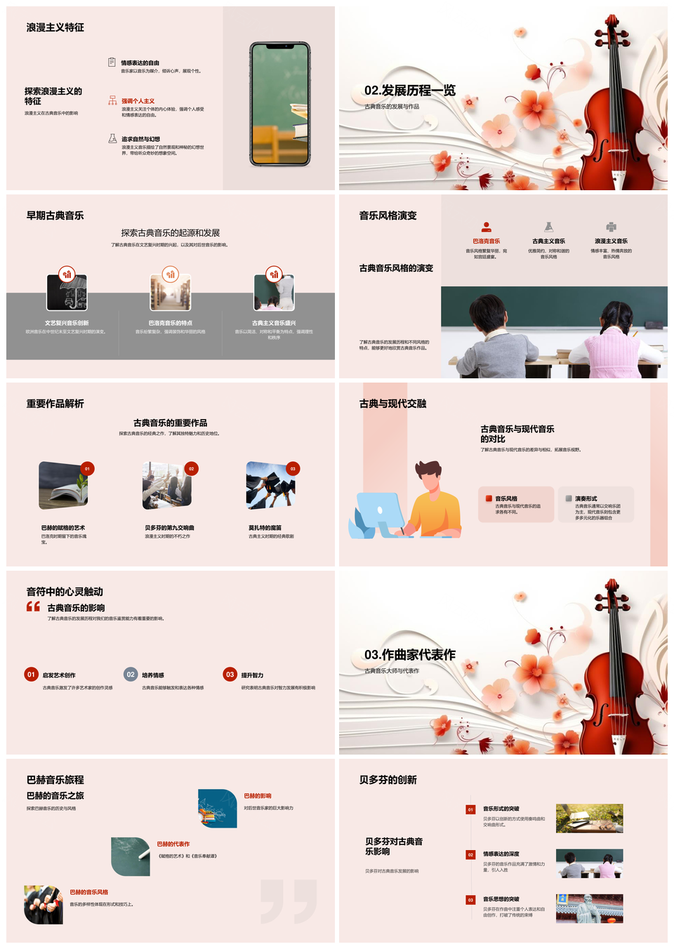 风云办公提供的巴赫贝多芬莫扎特古典音乐历史与鉴赏PPT模板,下载格式为pptx,一共33页,作品中文字及图均可以修改和编辑,图片更改请在作品中右键图片并更换,文字修改请直接点击文字进行修改。