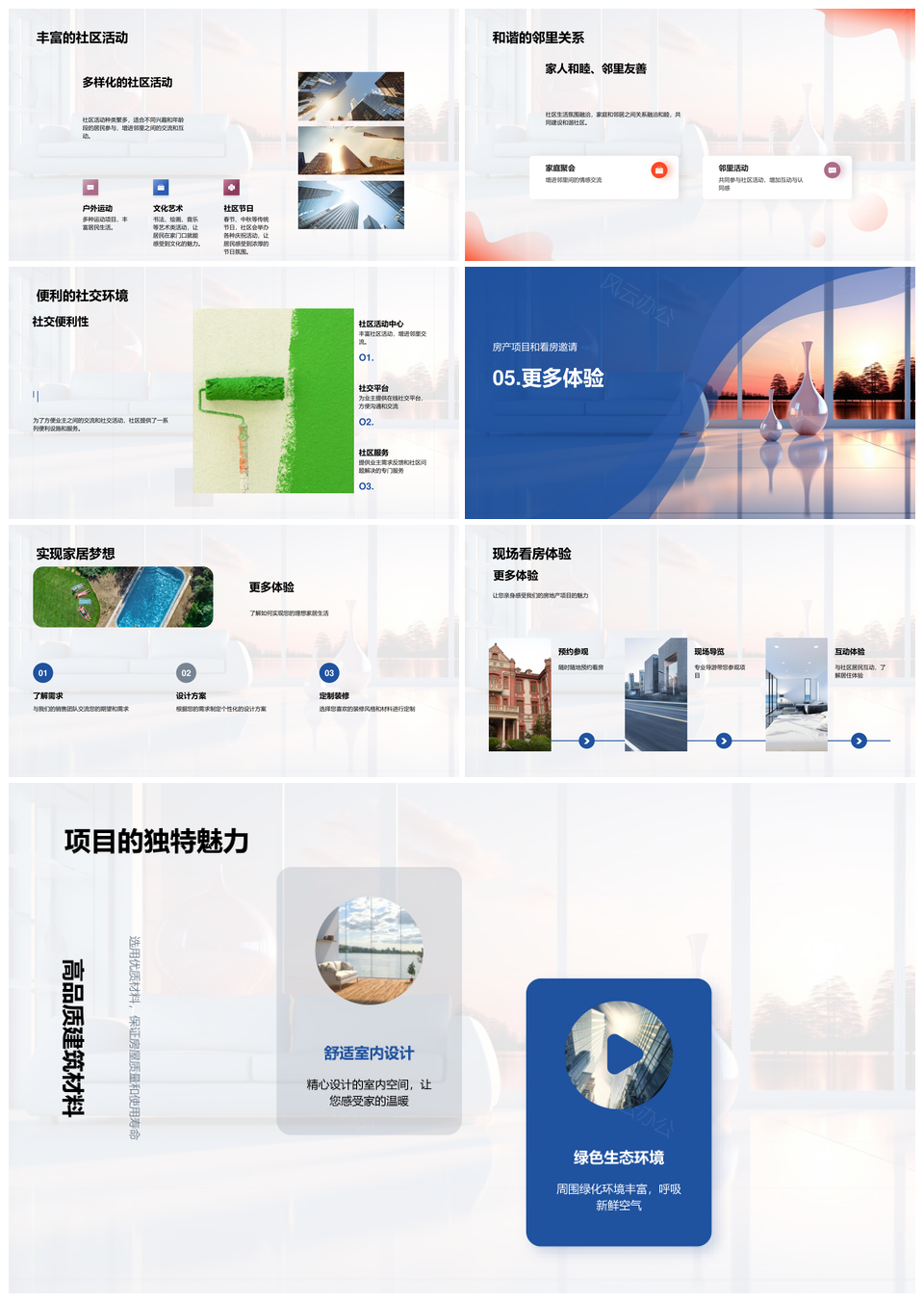 这是一张家居梦想现代房屋建材设计基建配套新居PPT模板,包含家居、梦想、现代、房屋、建材、设计、基建、配套、新居等主题内容,也可用作家居梦想现代房屋、现代房屋建材设计、建材设计基建配套、基建配套新居、家居梦想现代、现代房屋建材、房屋建材设计、设计基建配套、基建配套新居、家居梦想、现代房屋、房屋建材、建材设计、基建配套、配套新居等PPT场景使用。 风云办公提供的家居梦想现代房屋建材设计基建配套新居PPT模板,下载格式为pptx,一共25页,作品中文字及图均可以修改和编辑,图片更改请在作品中右键图片并更换,文字修改请直接点击文字进行修改。