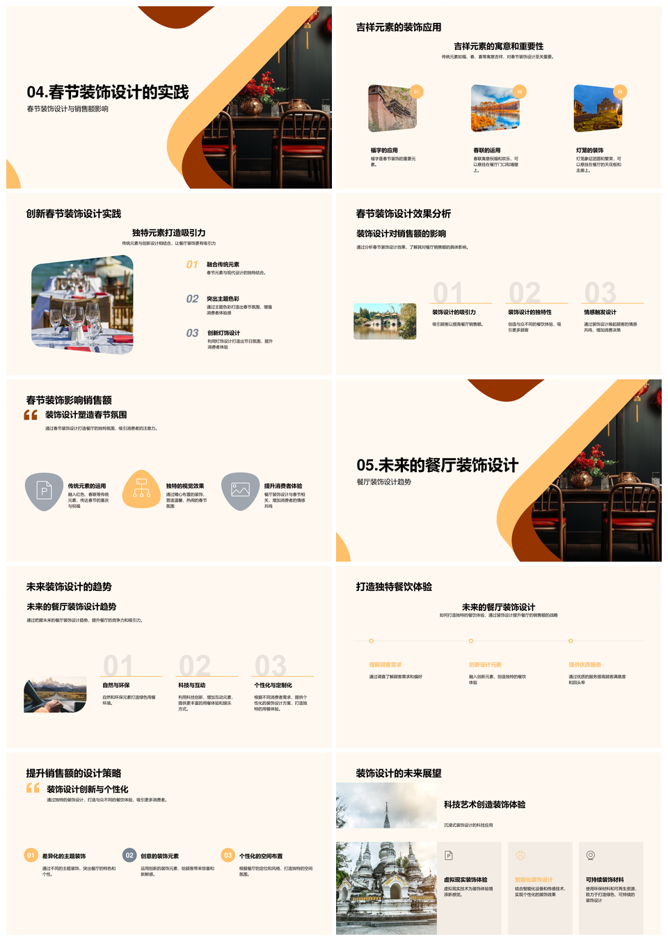 这是一张春节餐饮空间传统灯笼创新装饰销售策略PPT模板,包含春节、餐饮、空间、传统、灯笼、创新、装饰、销售、策略等主题内容,也可用作春节餐饮空间传统灯笼创新装饰销售策略、春节餐饮空间传统灯笼创新装饰、餐饮空间传统灯笼创新装饰销售、空间传统灯笼创新装饰销售策略、春节餐饮空间传统灯笼、餐饮空间传统灯笼创新、空间传统灯笼创新装饰、传统灯笼创新装饰销售、灯笼创新装饰销售策略、春节餐饮空间传统、餐饮空间传统灯笼、空间传统灯笼创新、传统灯笼创新装饰、灯笼创新装饰销售、创新装饰销售策略等PPT场景使用。 风云办公提供的春节餐饮空间传统灯笼创新装饰销售策略PPT模板,下载格式为pptx,一共28页,作品中文字及图均可以修改和编辑,图片更改请在作品中右键图片并更换,文字修改请直接点击文字进行修改。