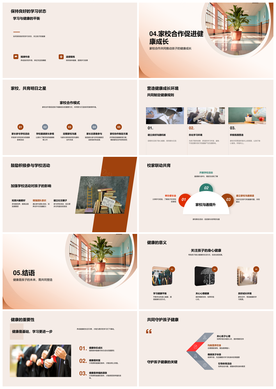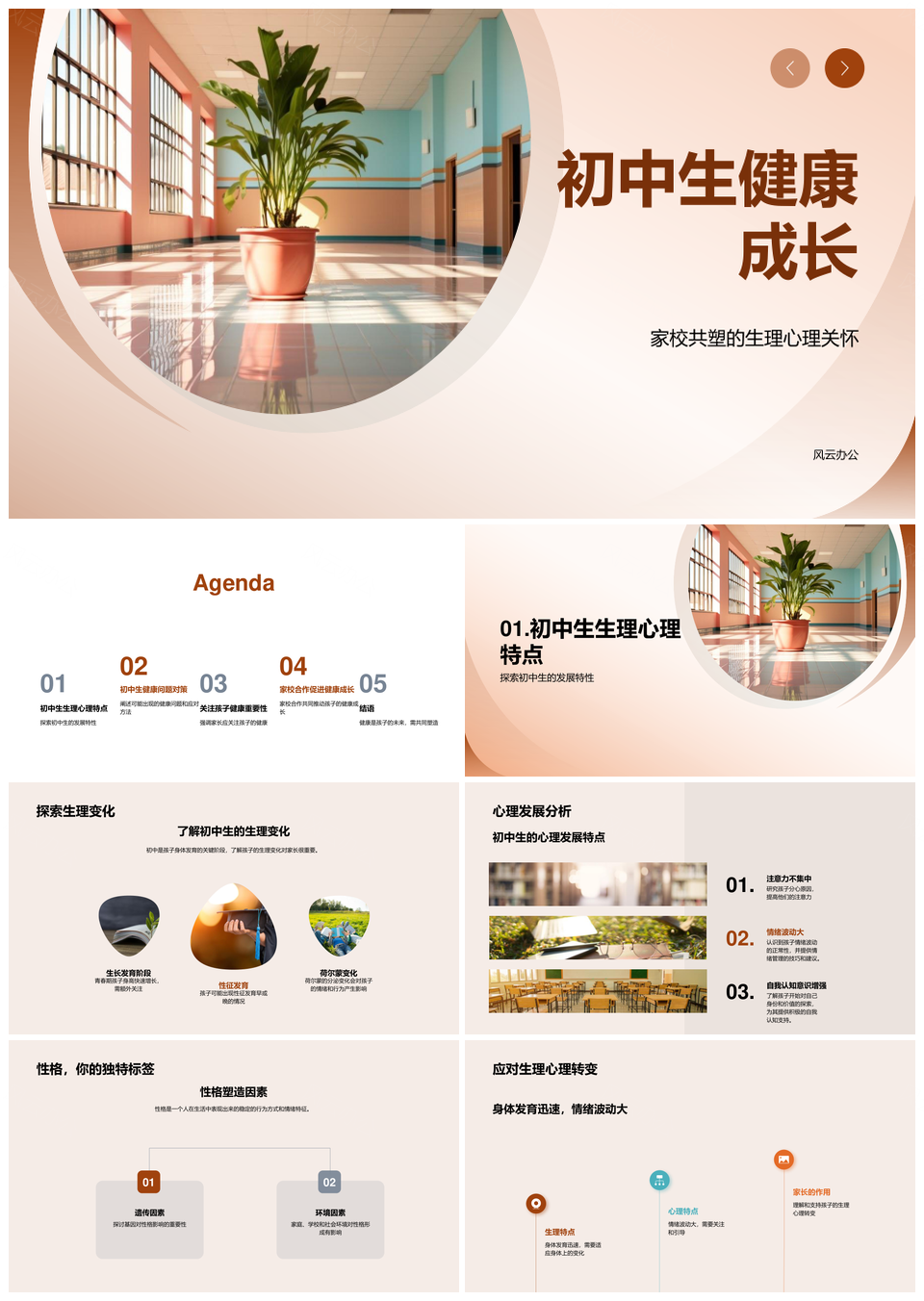 家校共塑初中生健康身心营养运动休息校园PPT模板推荐