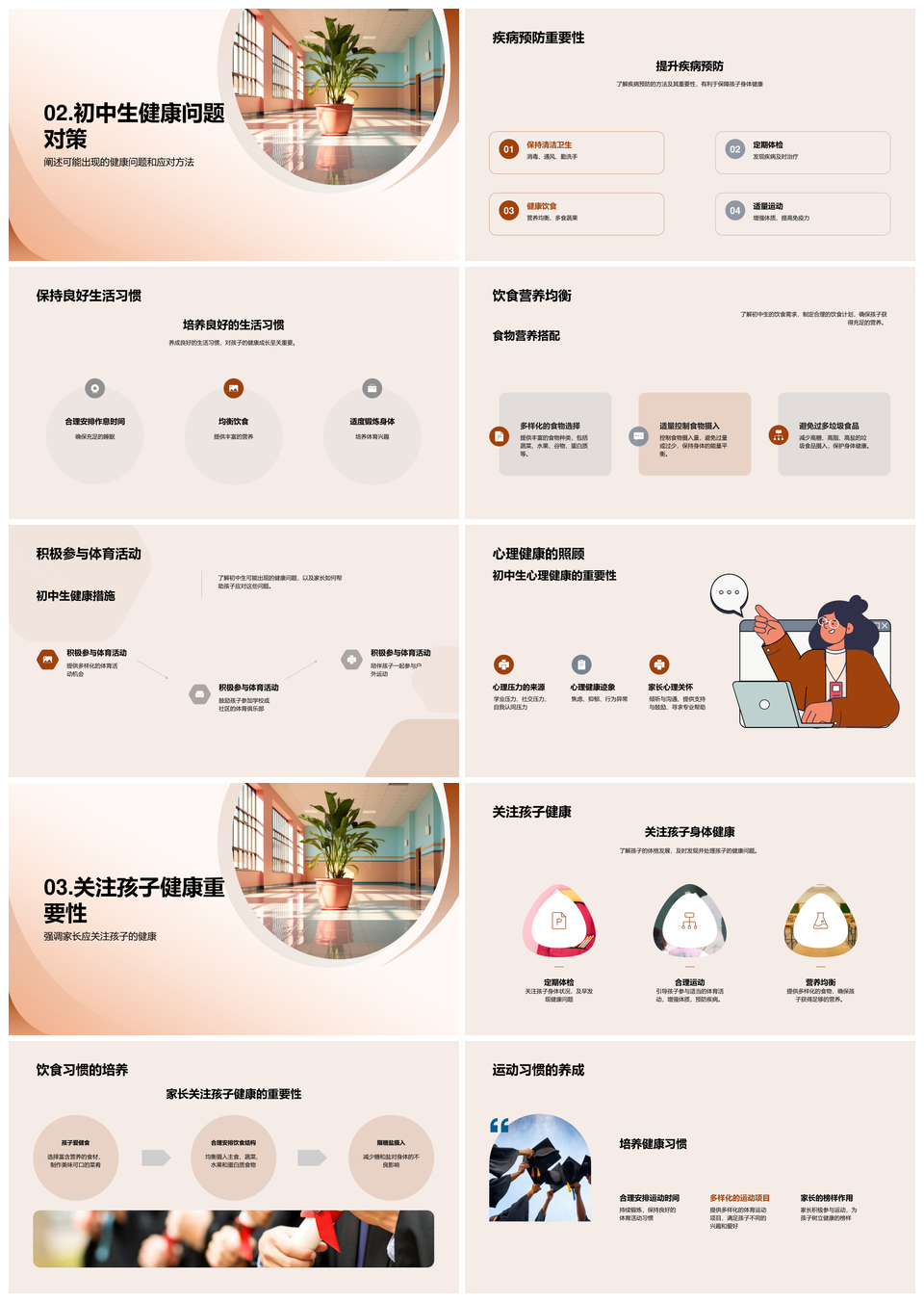 家校共塑初中生健康身心营养运动休息校园PPT模板
