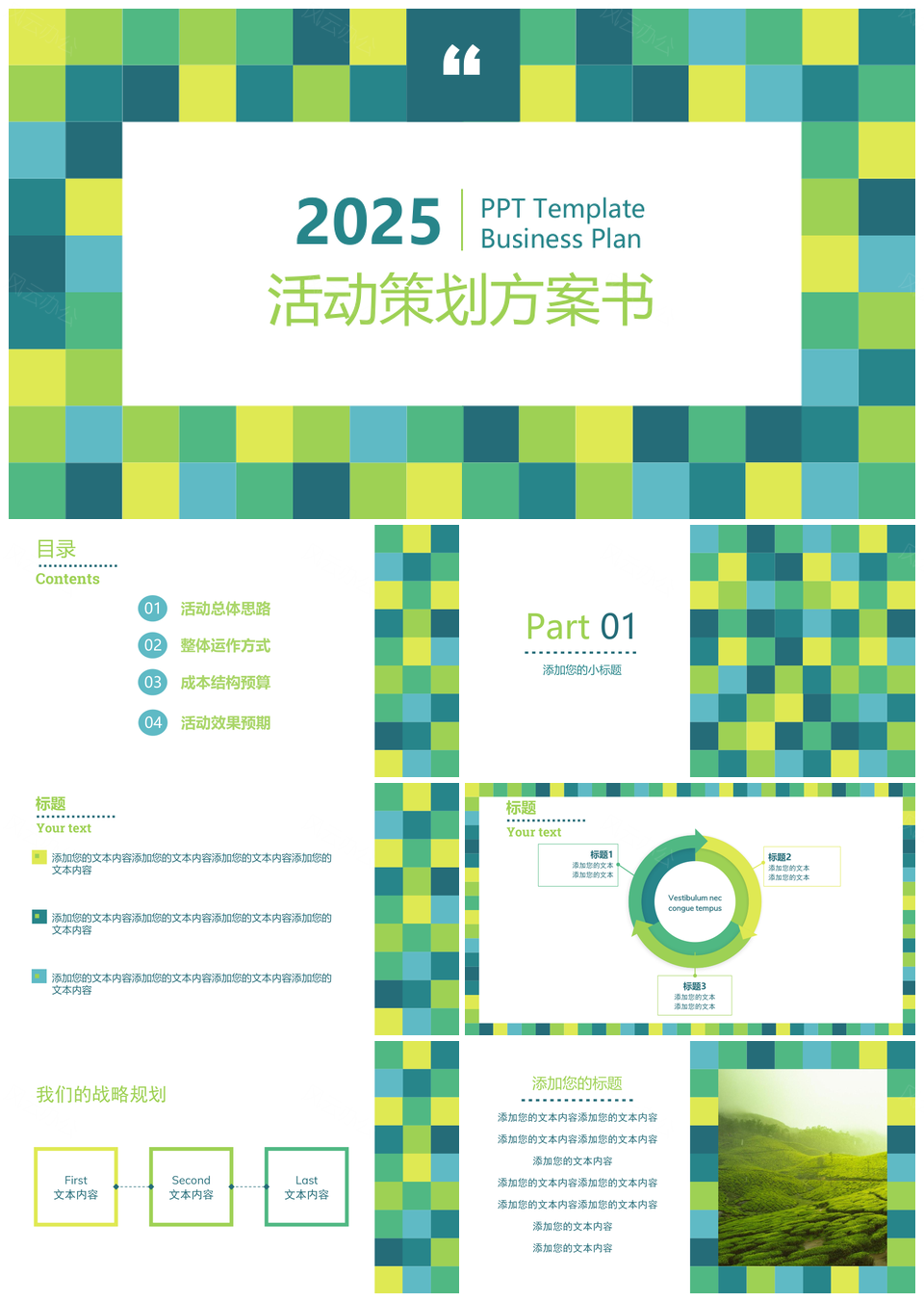 2025动态绿色小清新通用商务工作总结计划营销策划PPT模板