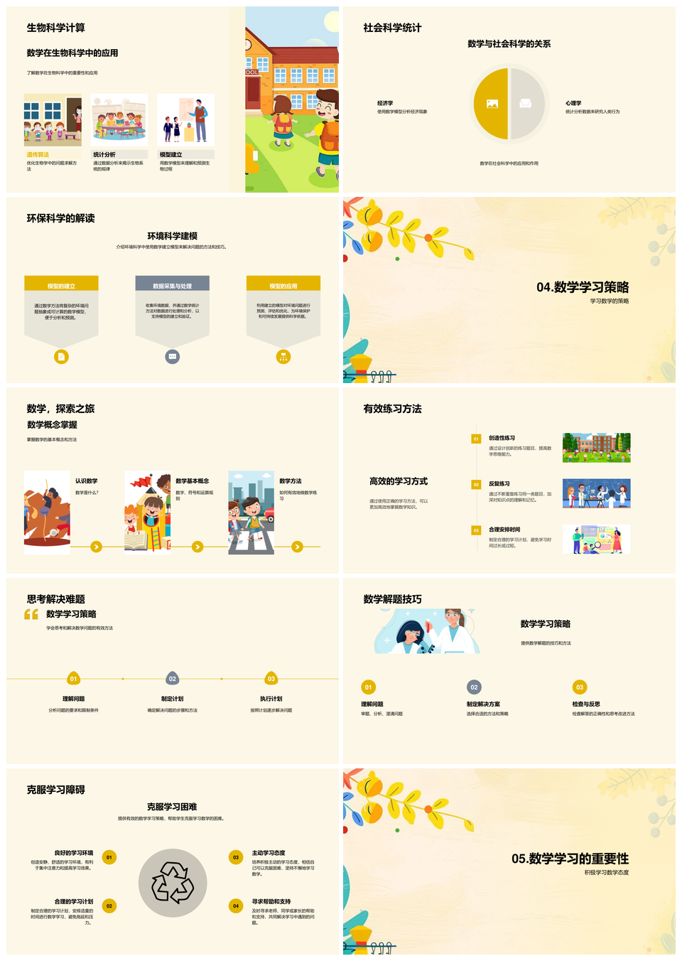 数学探索实践理解应用科学关系学习策略PPT模板推荐