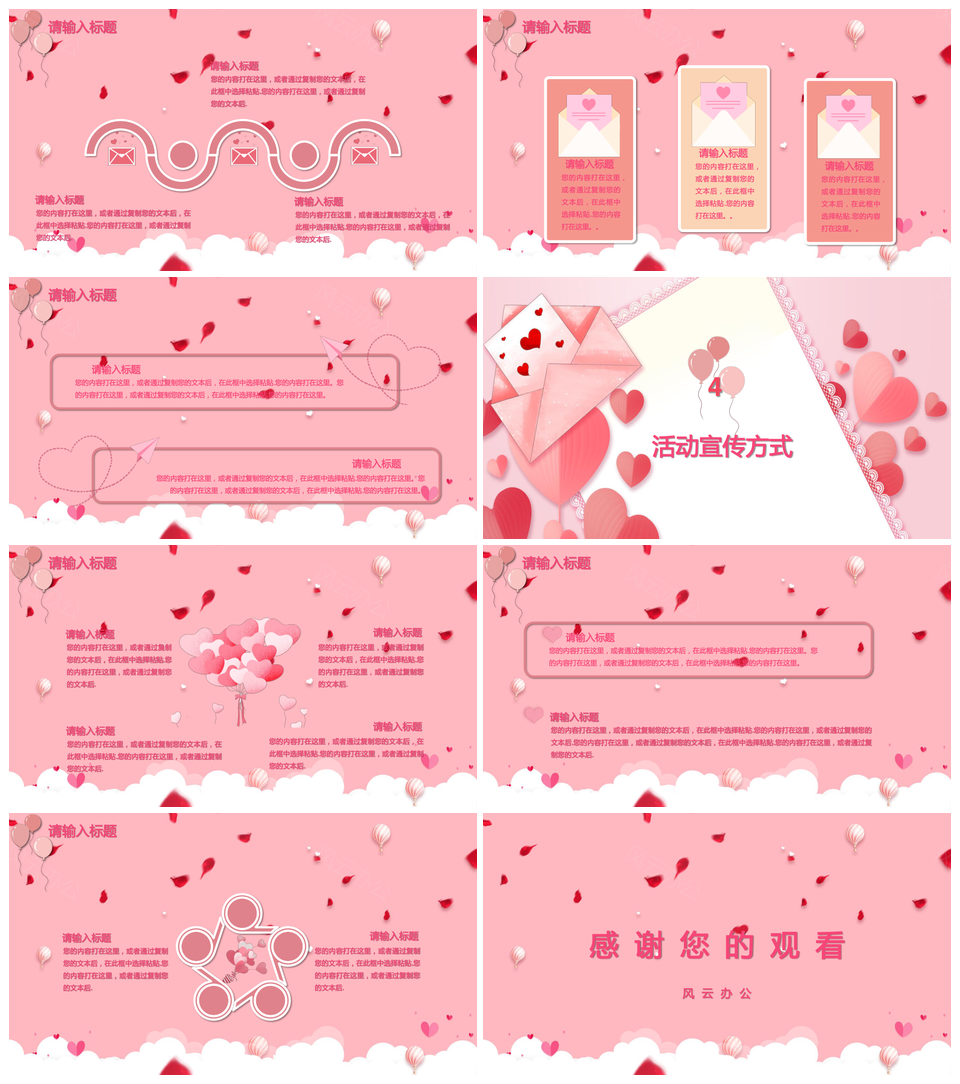 风云办公提供的粉色小清新情人节活动策划PPT模板,下载格式为pptx,一共24页,作品中文字及图均可以修改和编辑,图片更改请在作品中右键图片并更换,文字修改请直接点击文字进行修改。