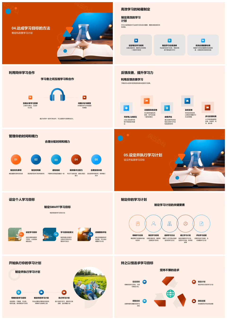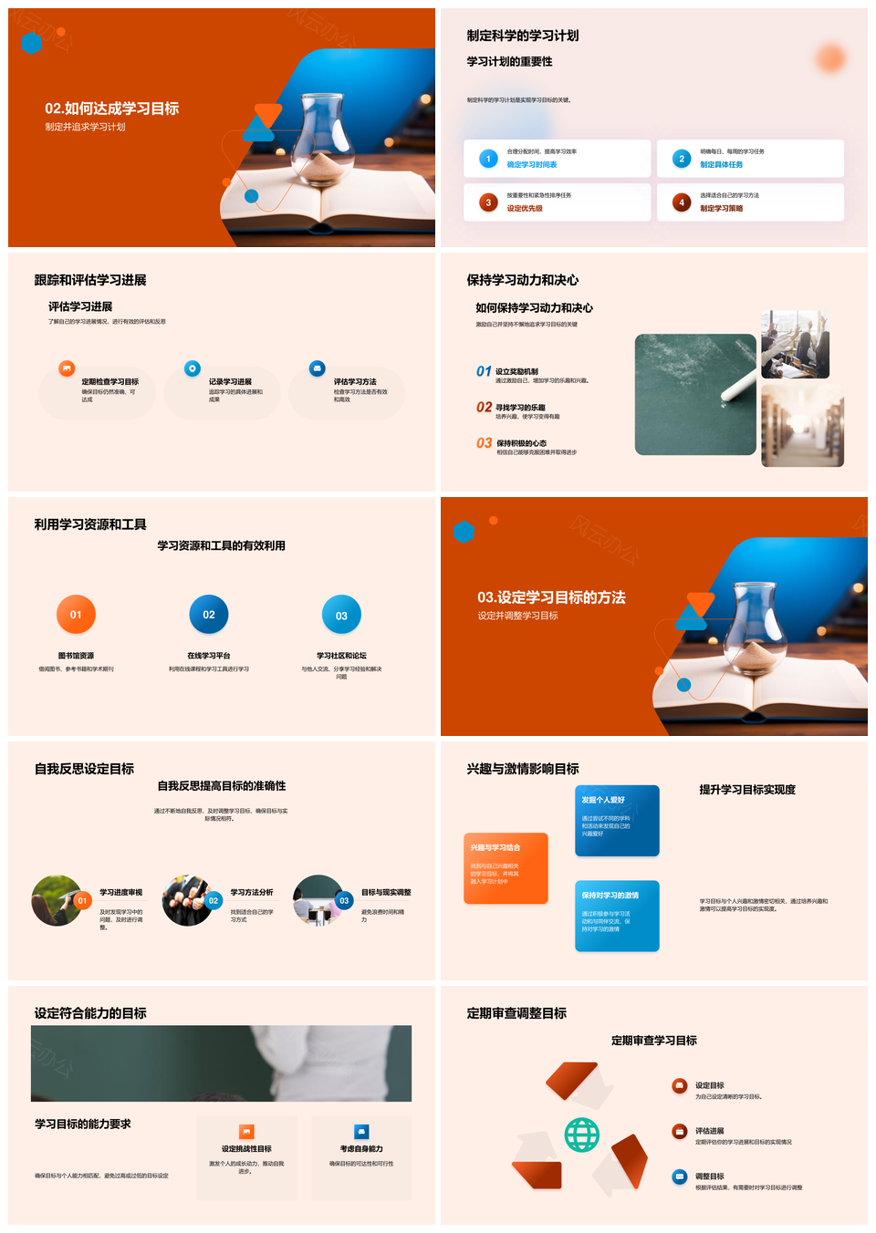 学习目标个性计划动力资源工具反思调整时间管理书PPT模板推荐