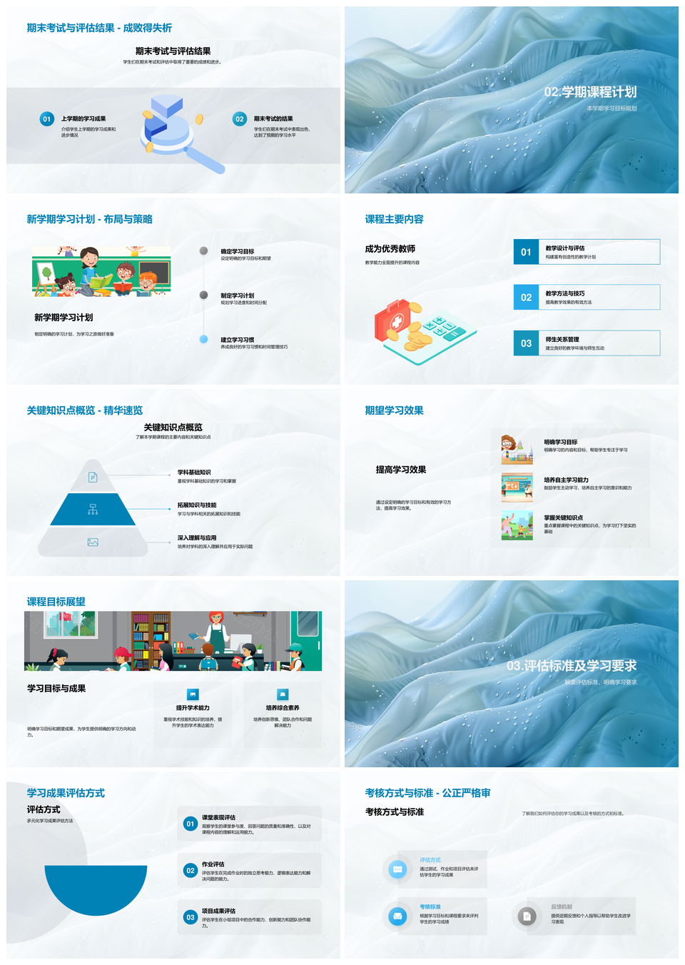 新学期课程规划学习计划期末知识点成果PPT模板推荐