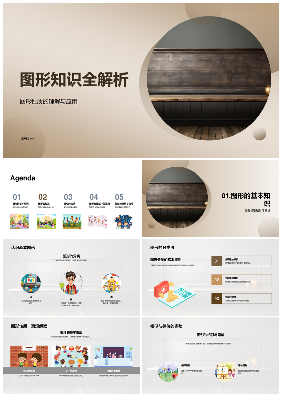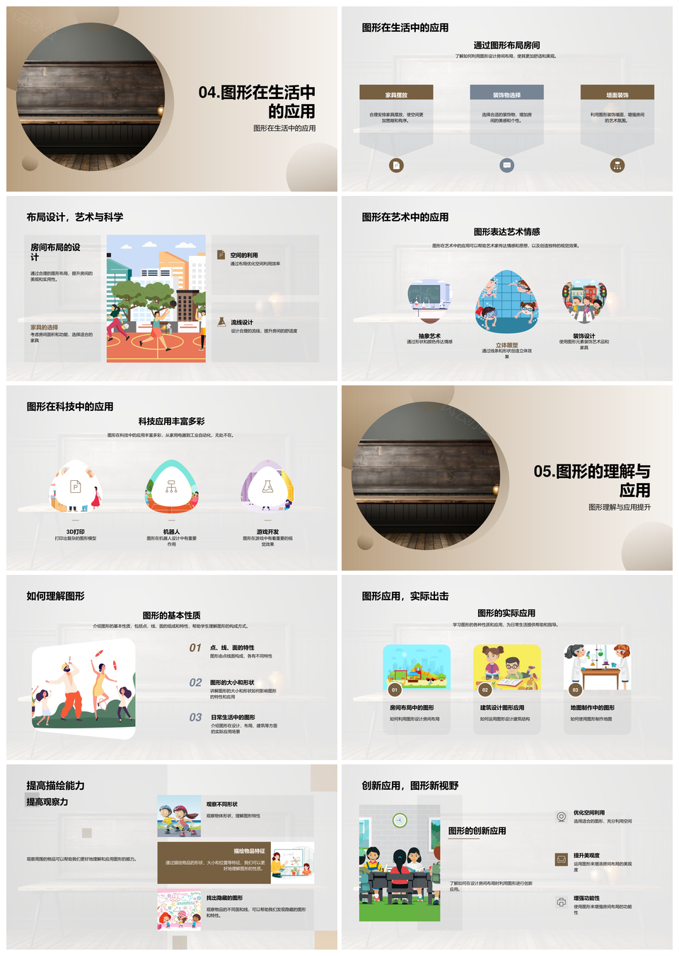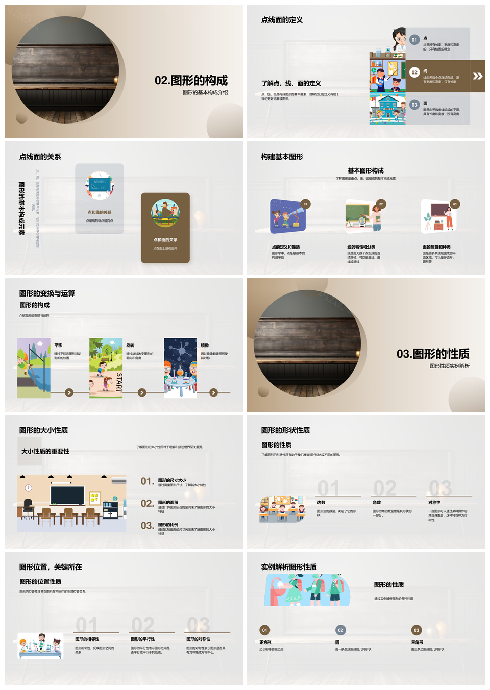 小学数学图形教学全解性质分类变换应用PPT模板推荐