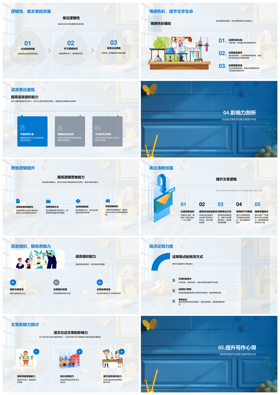 2025论述文写作技巧引言结论主体构建论证逻辑PPT模板推荐