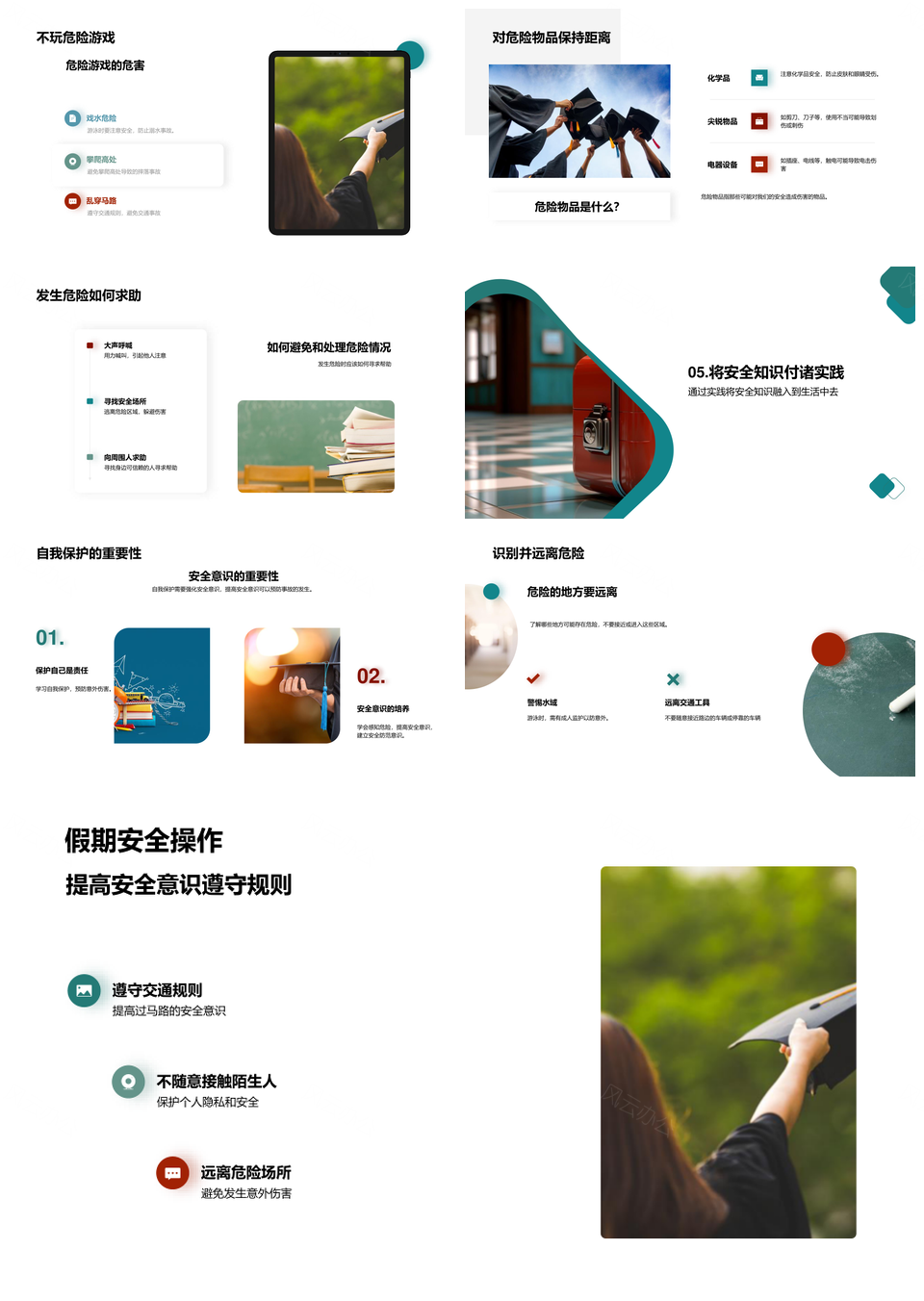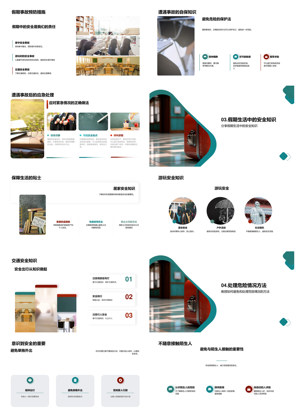 这是一张假期安全防控与应急自救事故预防PPT模板,包含假期、安全、防控、应急、自救、事故、预防等主题内容,也可用作假期安全防控应急自救、应急自救事故预防、假期安全防控、安全防控应急、防控应急自救、假期安全应急、安全应急自救、假期应急自救、假期防控应急、假期安全、安全防控、防控应急、应急自救、事故预防、安全应急等PPT场景使用。