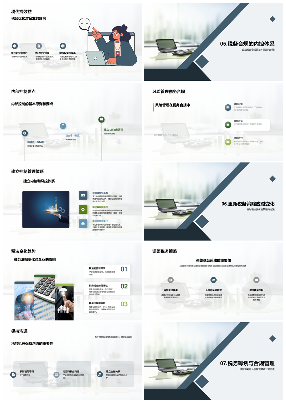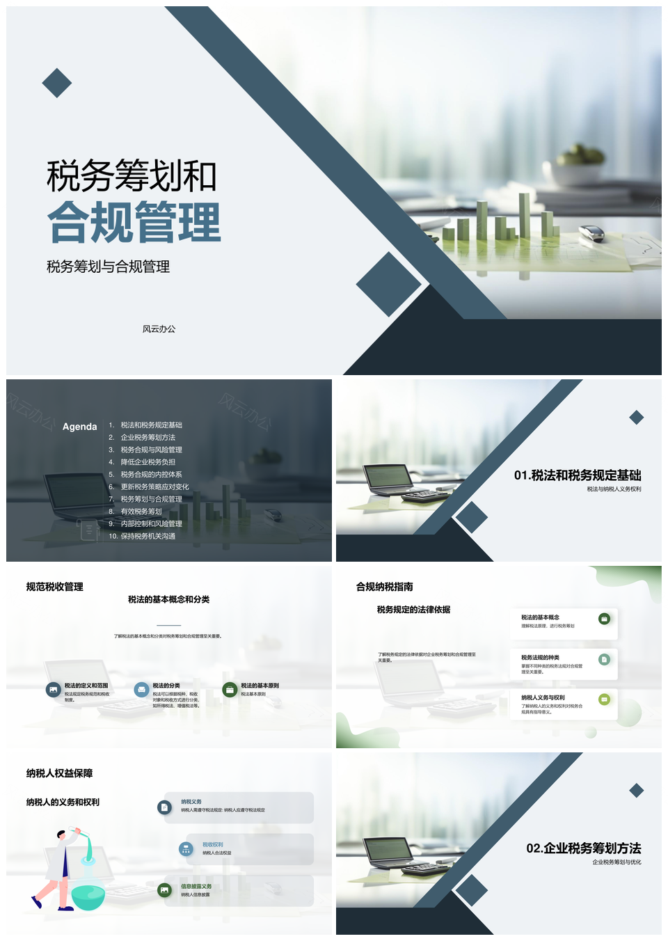 风云办公提供的纳税人税法税务筹划合规管理优化结构PPT模板,下载格式为pptx,一共43页,作品中文字及图均可以修改和编辑,图片更改请在作品中右键图片并更换,文字修改请直接点击文字进行修改。