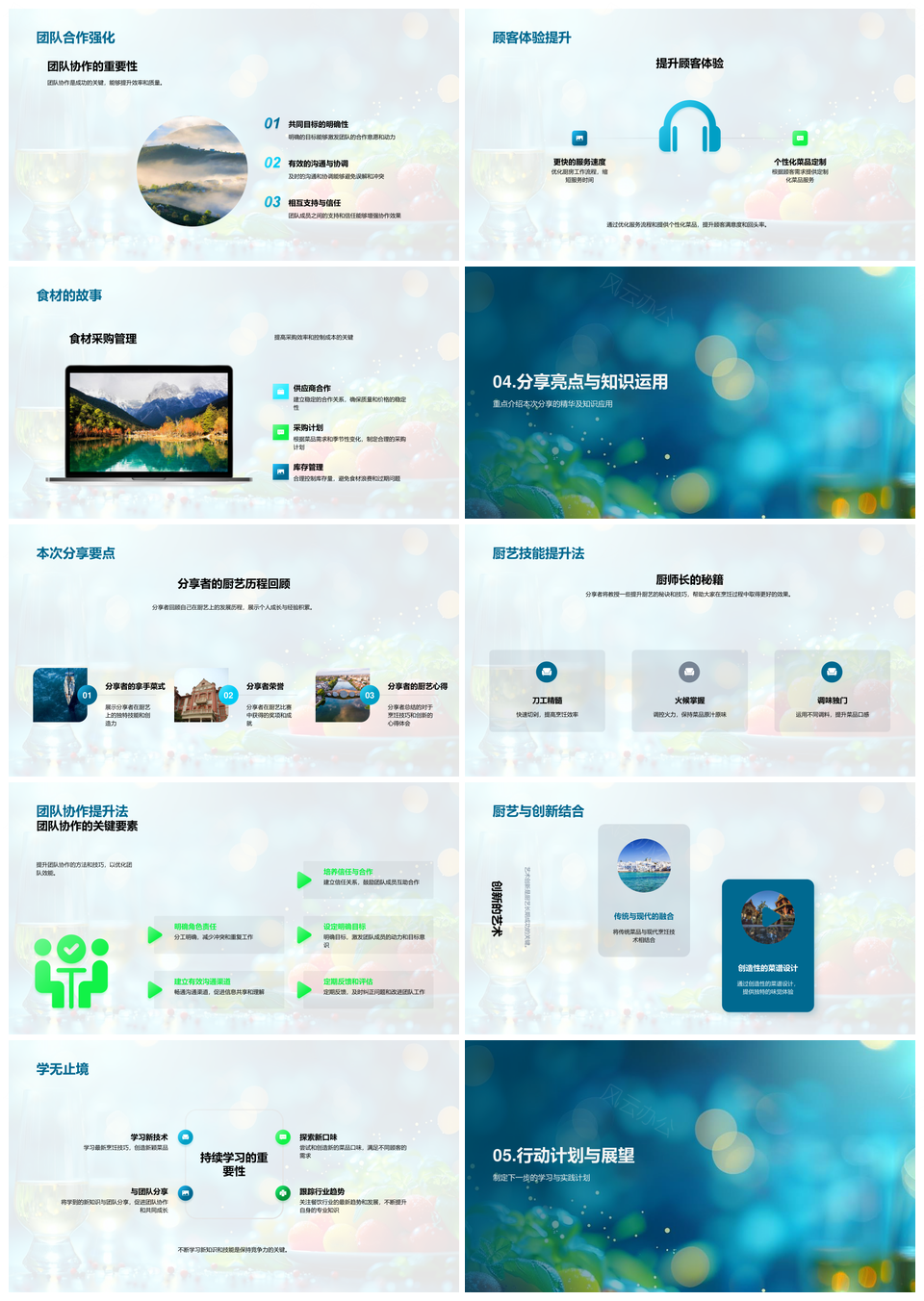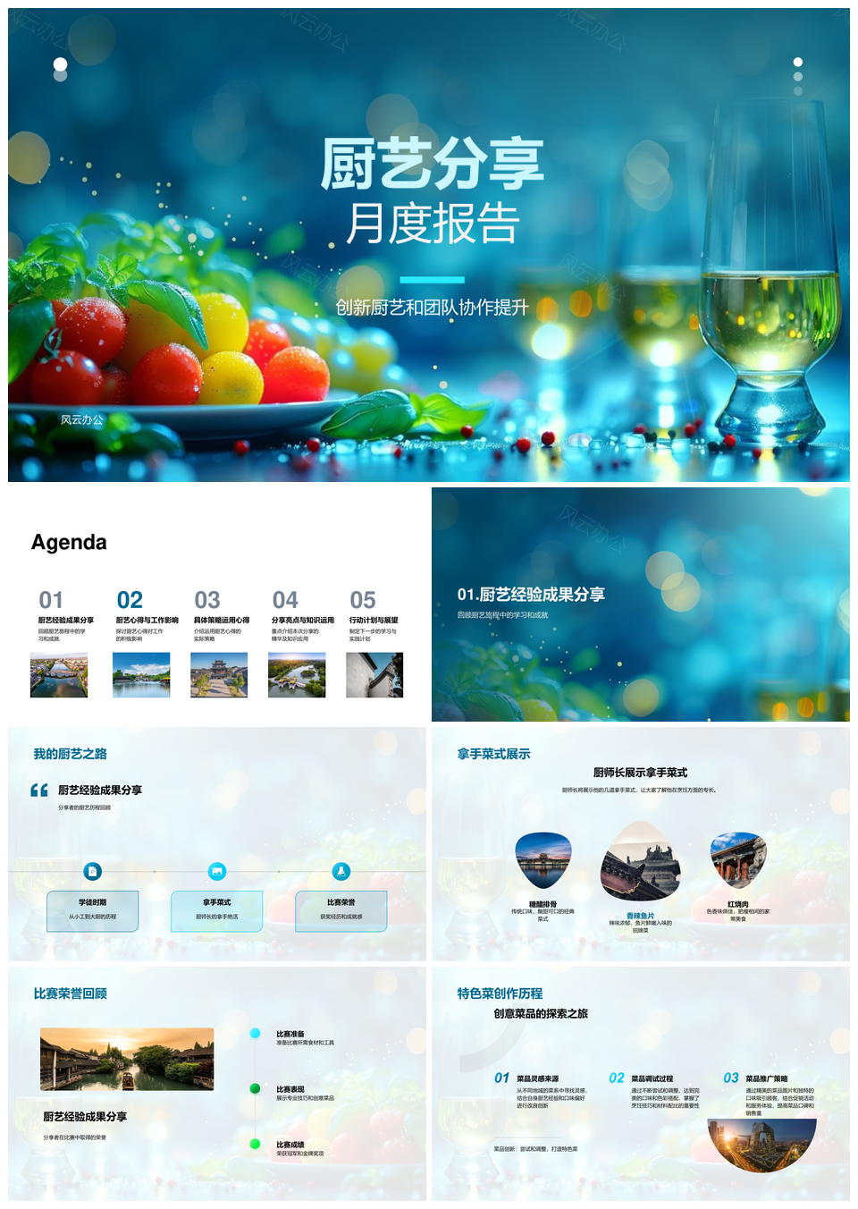 风云办公提供的厨艺团队协作创新赛荣誉月报PPT模板,下载格式为pptx,一共33页,作品中文字及图均可以修改和编辑,图片更改请在作品中右键图片并更换,文字修改请直接点击文字进行修改。