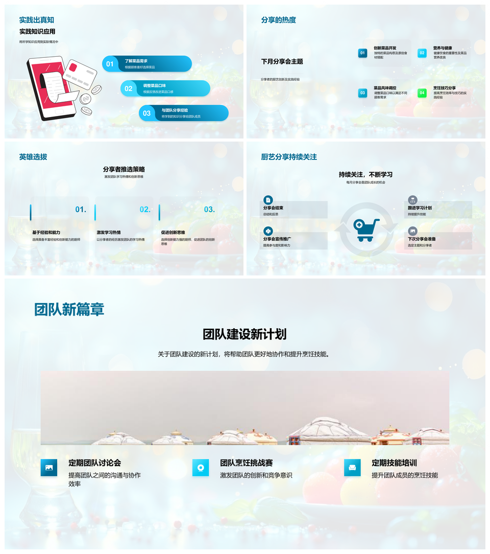 这是一张厨艺团队协作创新赛荣誉月报PPT模板,包含厨艺团队、协作、创新赛、荣誉、月报等主题内容,也可用作厨艺团队协作创新赛、团队协作创新赛荣誉、协作创新赛荣誉月报、厨艺团队协作、团队协作创新赛、协作创新赛荣誉、创新赛荣誉月报、厨艺团队荣誉、厨艺团队月报、团队协作荣誉、团队荣誉月报、厨艺团队、团队协作、协作创新赛、创新赛荣誉等PPT场景使用。