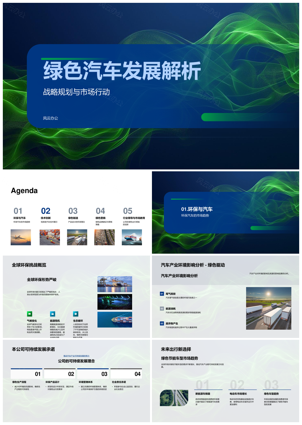 这是一张绿色汽车战略规划市场行动环保技术解析PPT模板,包含绿色汽车、战略规划、市场行动、环保技术等主题内容,也可用作绿色汽车战略规划市场行动、绿色汽车战略规划环保技术、战略规划市场行动环保技术、规划市场行动环保技术解析、绿色汽车市场行动环保技术、汽车战略规划环保技术解析、绿色汽车战略环保技术解析、战略规划市场环保技术解析、市场行动环保技术解析、绿色汽车战略规划、战略规划市场行动、规划市场行动环保、市场行动环保技术、行动环保技术解析、绿色环保技术解析等PPT场景使用。 风云办公提供的绿色汽车战略规划市场行动环保技术解析PPT模板,下载格式为pptx,一共28页,作品中文字及图均可以修改和编辑,图片更改请在作品中右键图片并更换,文字修改请直接点击文字进行修改。