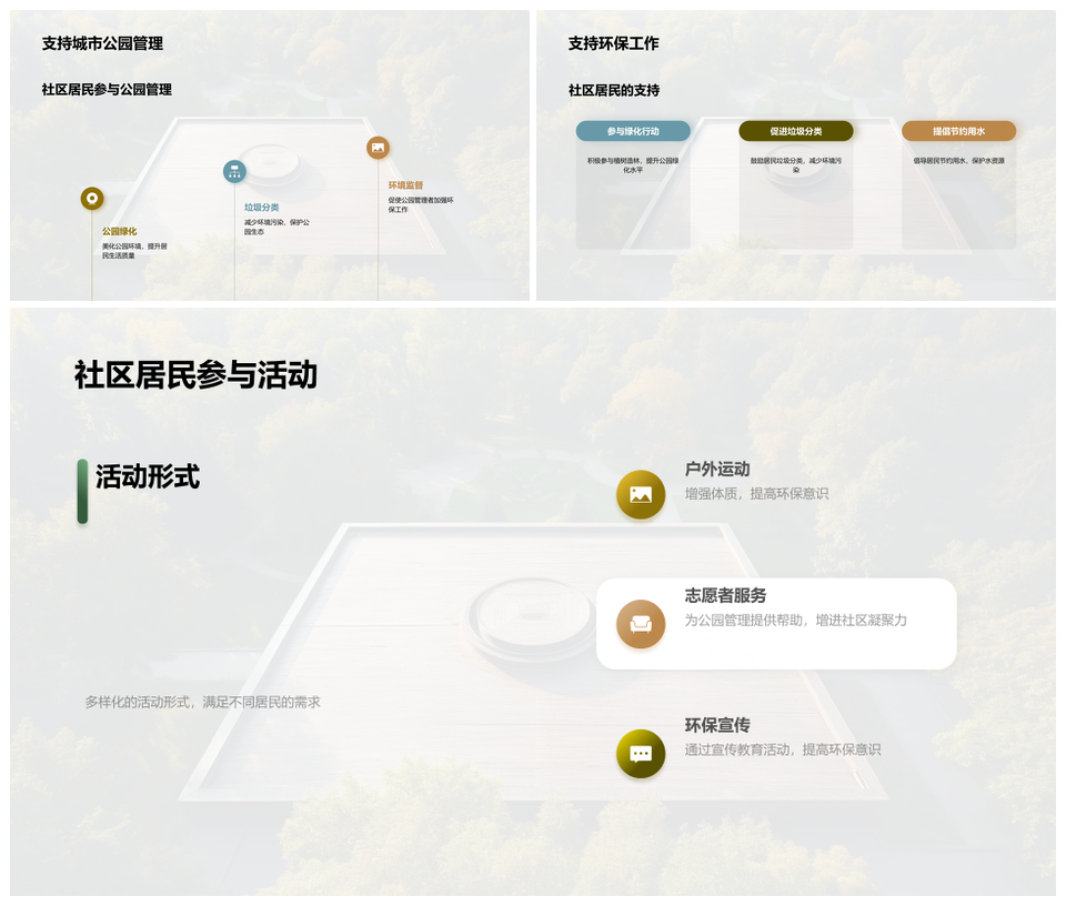 这是一张社区共建绿色公园管护家园PPT模板,包含社区、共建、绿色公园、管护、家园等主题内容,也可用作社区共建绿色公园、社区共建管护家园、共建绿色公园管护、绿色公园管护家园、社区绿色公园管护、社区共建绿色公园管护、社区共建绿色管护、共建绿色公园家园、绿色公园管护社区、社区绿色管护家园、共建绿色公园社区、绿色公园共建社区、管护家园绿色公园、社区公园管护家园、共建管护绿色公园等PPT场景使用。