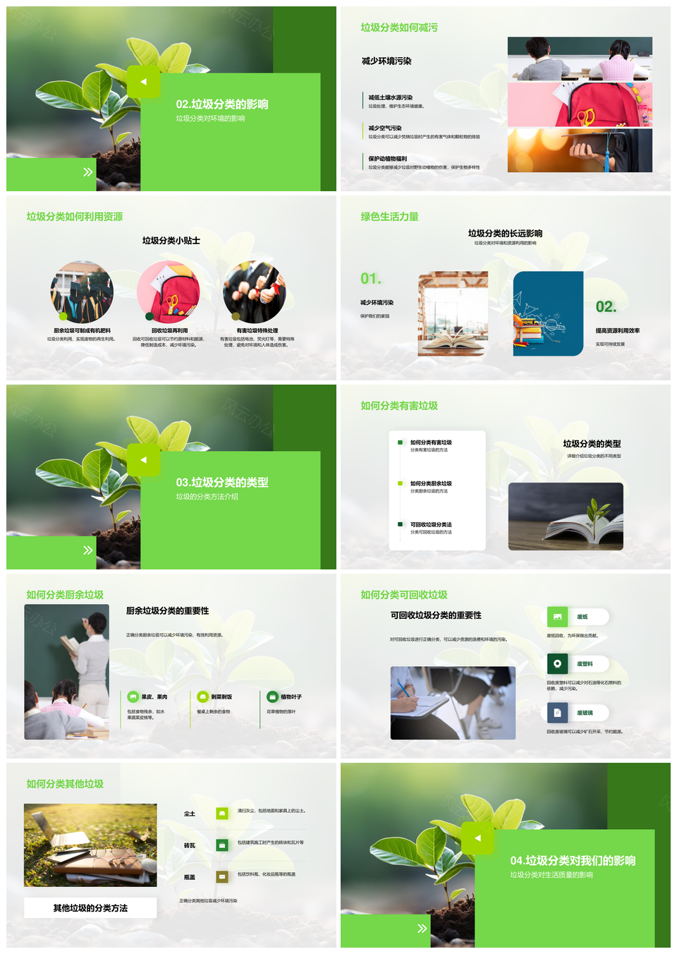 风云办公提供的学生环保教育实践垃圾分类活动PPT模板,下载格式为pptx,一共25页,作品中文字及图均可以修改和编辑,图片更改请在作品中右键图片并更换,文字修改请直接点击文字进行修改。