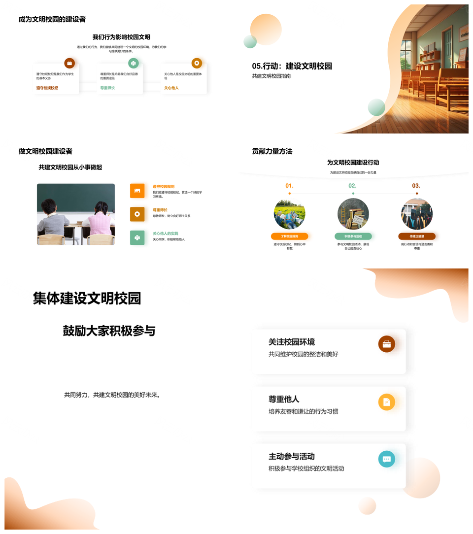这是一张师生守规共建文明校园良好环境PPT模板,包含师生、守规、共建、文明校园、良好环境等主题内容,也可用作师生守规共建文明、守规共建文明校园、共建文明校园环境、师生共建文明校园、守规共建校园环境、共建文明校园、文明校园环境、师生守规共建、守规共建文明、校园良好环境、师生文明校园、共建校园环境、守规文明校园、共建良好环境、文明校园良好环境等PPT场景使用。
