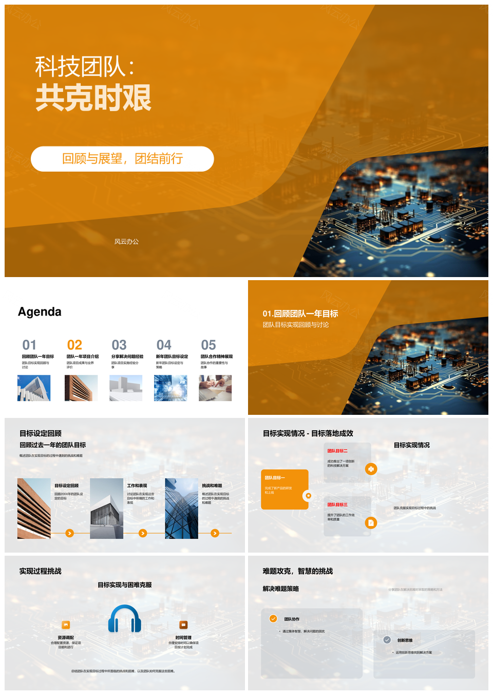 科技团队目标推进项目成果获评解数字电路板PPT模板推荐