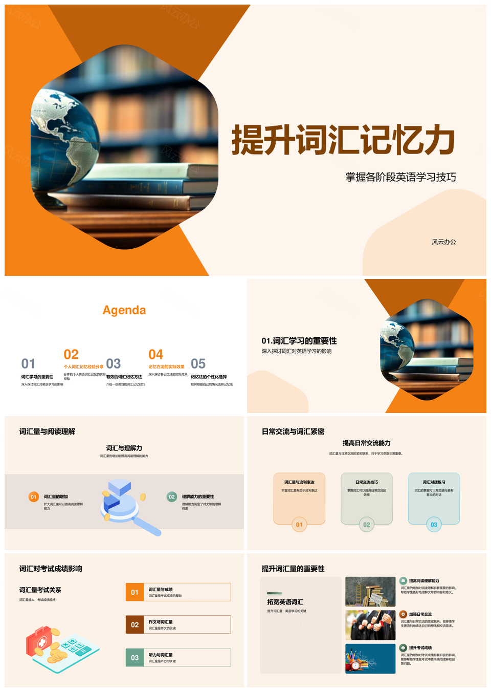风云办公提供的英语词汇联想记忆法提升考试阅读交流PPT模板,下载格式为pptx,一共28页,作品中文字及图均可以修改和编辑,图片更改请在作品中右键图片并更换,文字修改请直接点击文字进行修改。