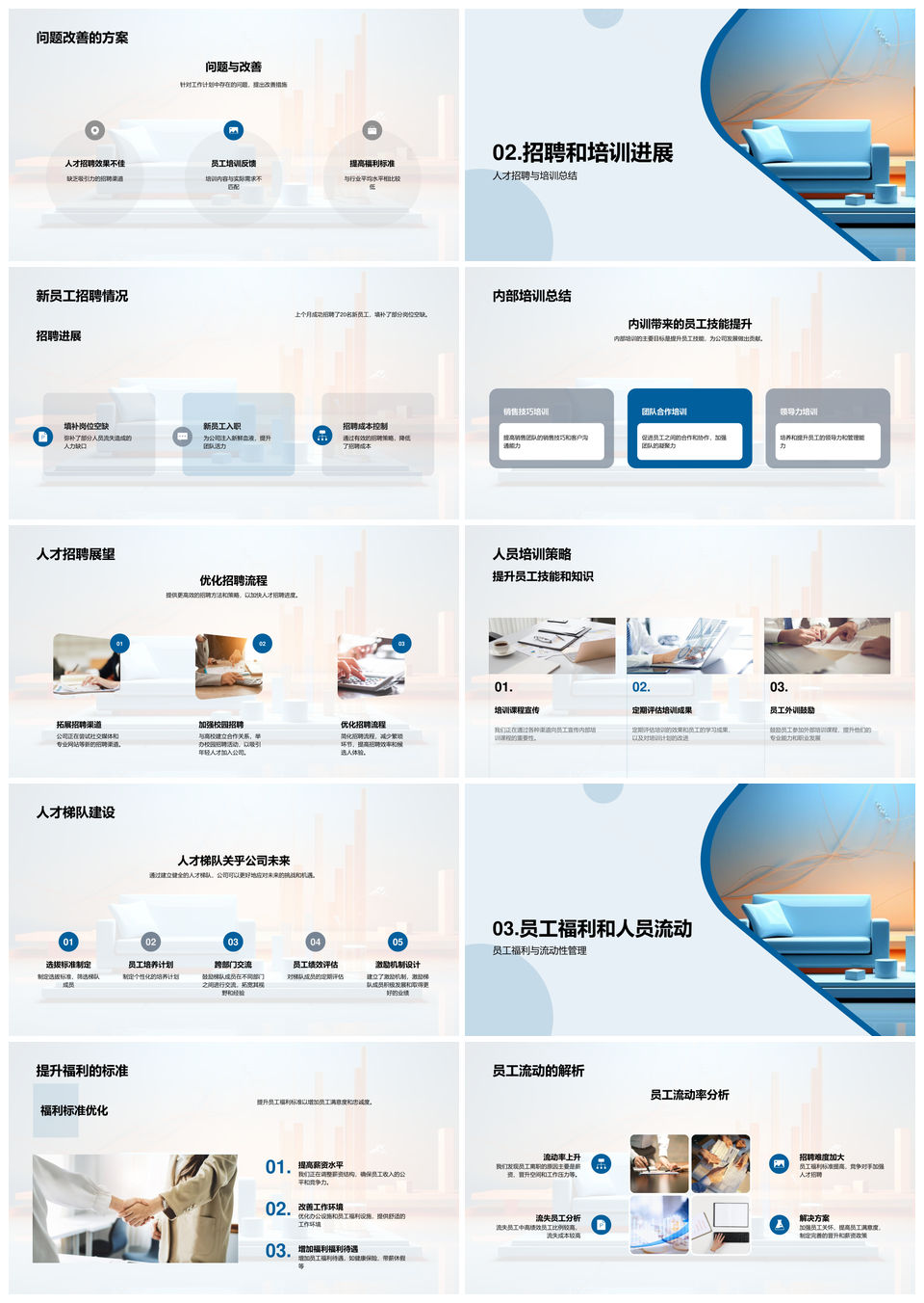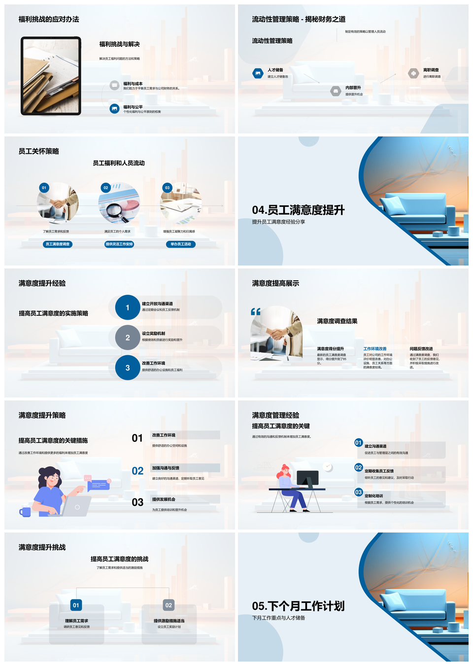 这是一张人力资源月结招聘培训福利流动满意度计划图表PPT模板,包含人力资源、月结、招聘、培训、福利、流动、满意度、计划、图表等主题内容,也可用作人力资源招聘培训福利、招聘培训福利流动、培训福利流动满意度、福利流动满意度计划、流动满意度计划图表、人力资源月结计划图表、月结招聘培训福利、人力资源招聘培训、月结招聘培训、招聘培训福利、培训福利流动、福利流动满意度、流动满意度计划、满意度计划图表、计划图表等PPT场景使用。 风云办公提供的人力资源月结招聘培训福利流动满意度计划图表PPT模板,下载格式为pptx,一共33页,作品中文字及图均可以修改和编辑,图片更改请在作品中右键图片并更换,文字修改请直接点击文字进行修改。