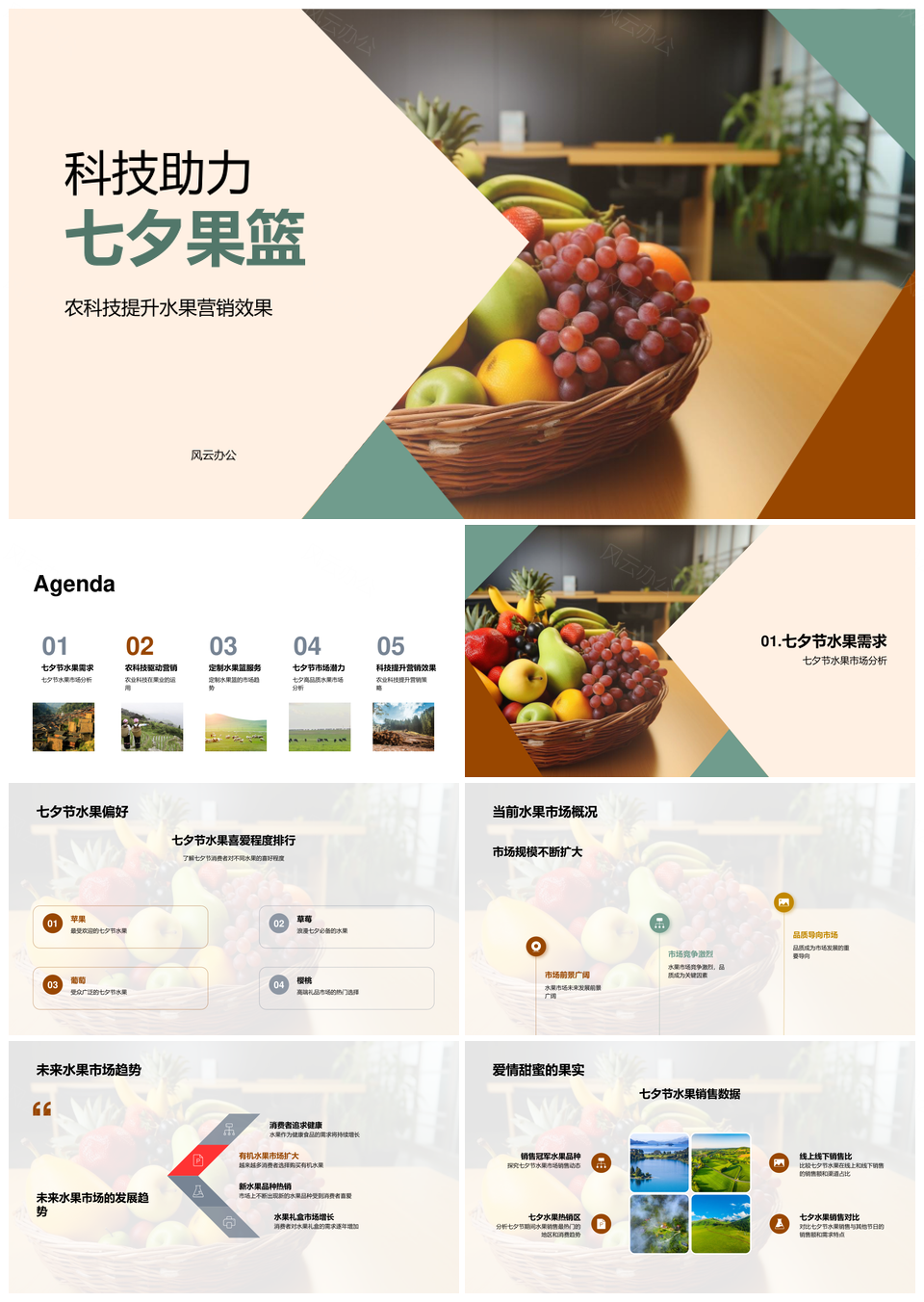 风云办公提供的农业科技定制七夕果篮营销PPT模板,下载格式为pptx,一共33页,作品中文字及图均可以修改和编辑,图片更改请在作品中右键图片并更换,文字修改请直接点击文字进行修改。